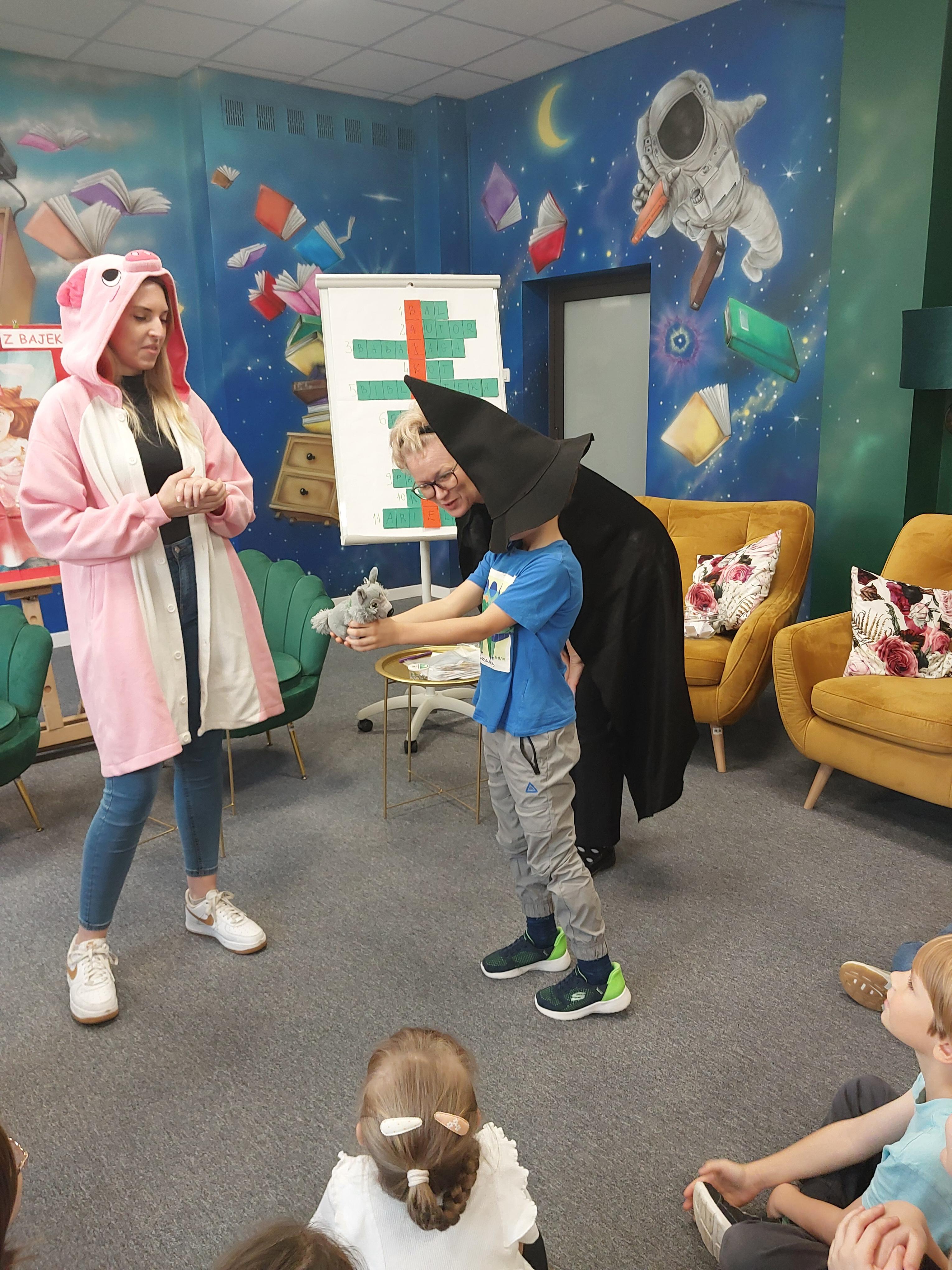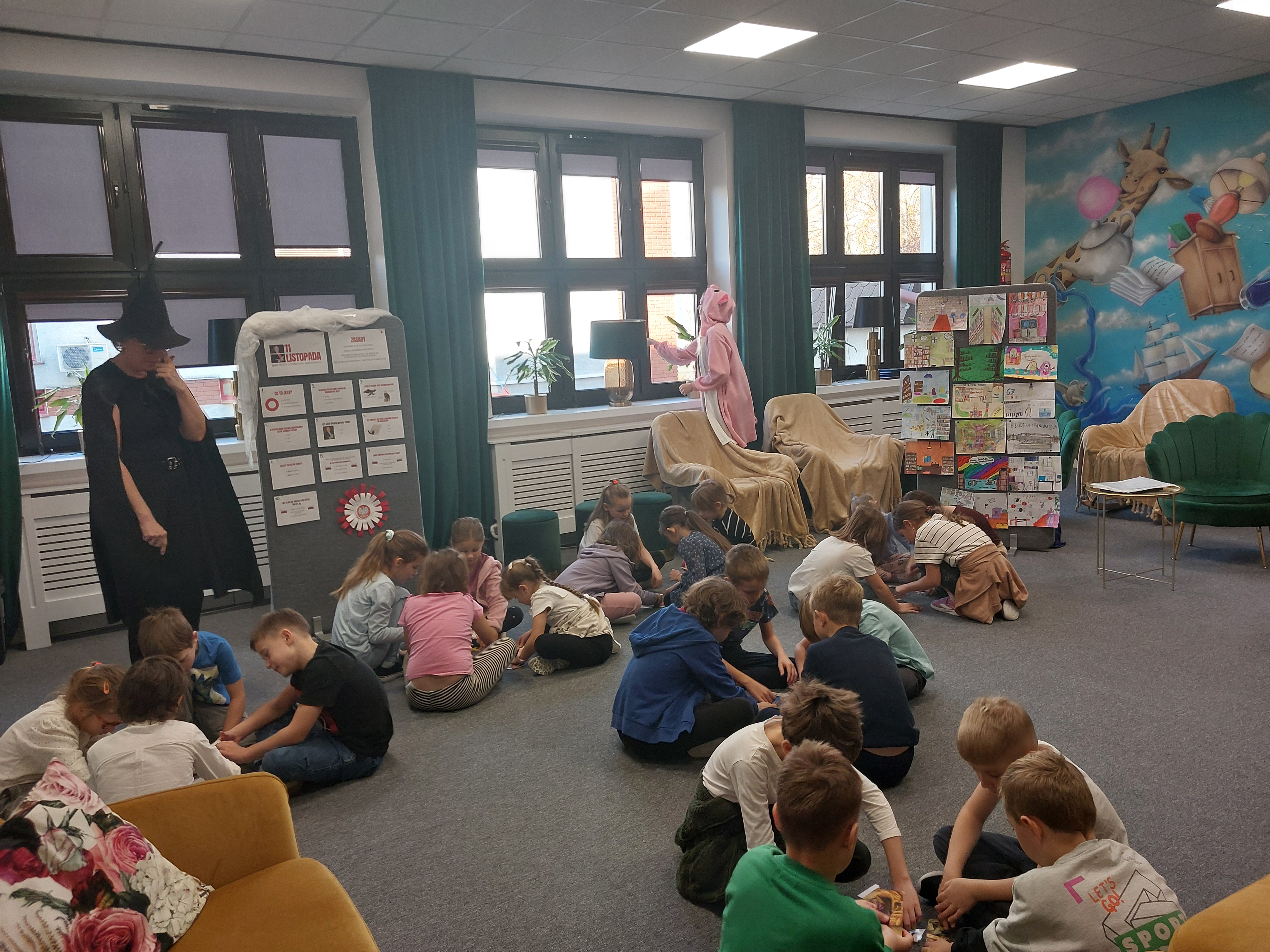 6 listopada uczniowie klasy 2c obchodzili w bibliotece Dzień Postaci z Bajek. Spotkanie zorganizowane przez nauczycielki biblioteki wprowadziło dzieci w magiczny świat ich ulubionych bohaterów. Dzieci brały udział w zabawach, quizach i zgadywankach, które sprawdzały znajomość bajkowych historii. Pracując w grupach układały puzzle. To radosne święto pełne fantazji i uśmiechu zintegrowało grupę i rozbudziło wyobraźnię wszystkich uczestników.