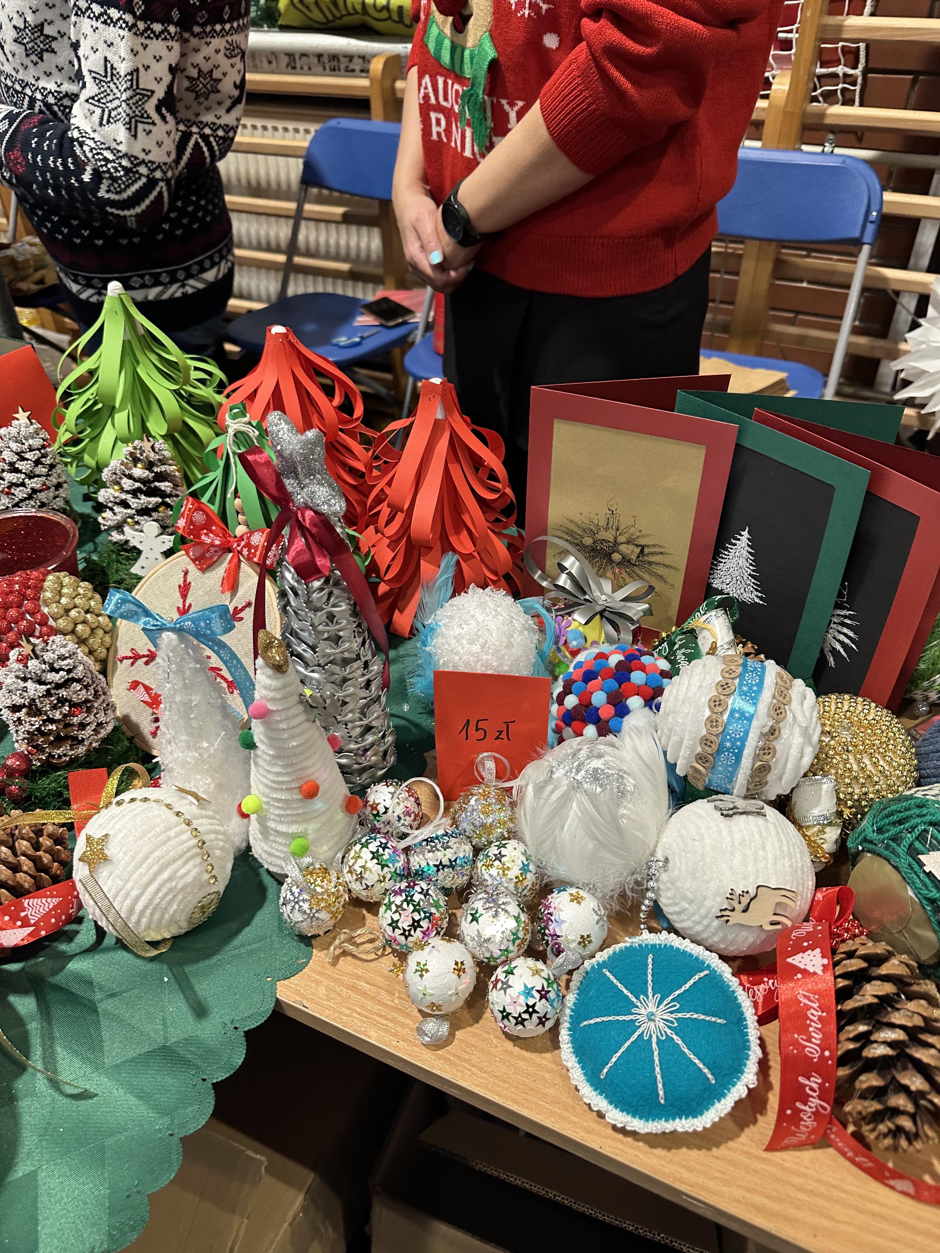 Podczas tegorocznego Kiermaszu Świątecznego ogromnym zainteresowaniem cieszyło się stoisko świetlicowe, na którym można było podziwiać i zakupić wyjątkowe, ręcznie wykonane ozdoby świąteczne.