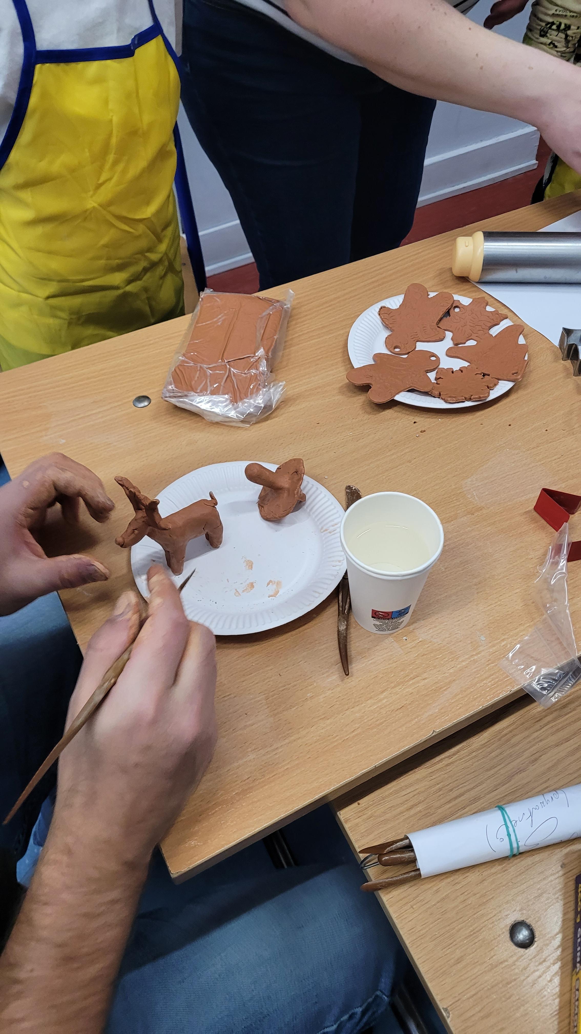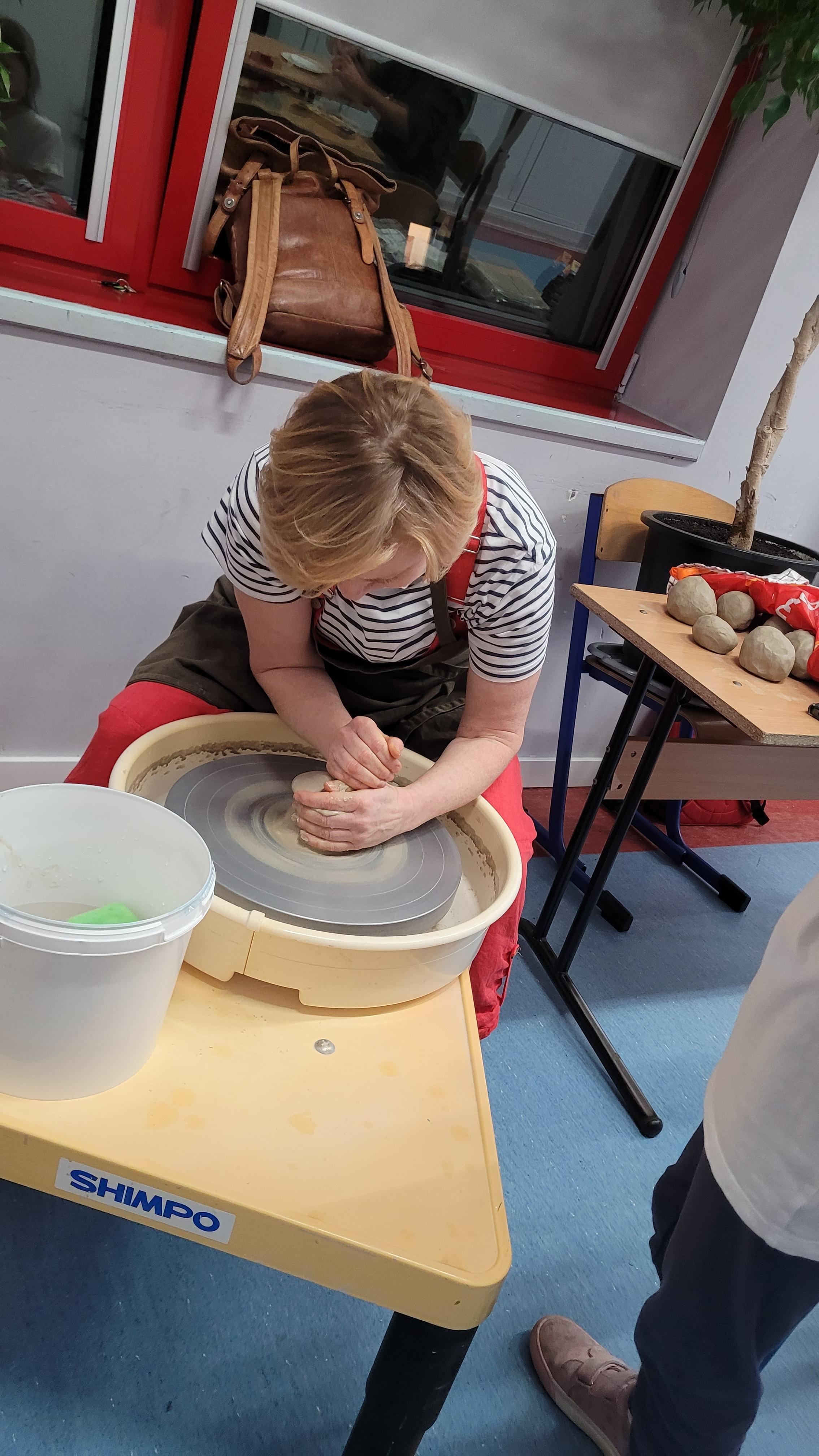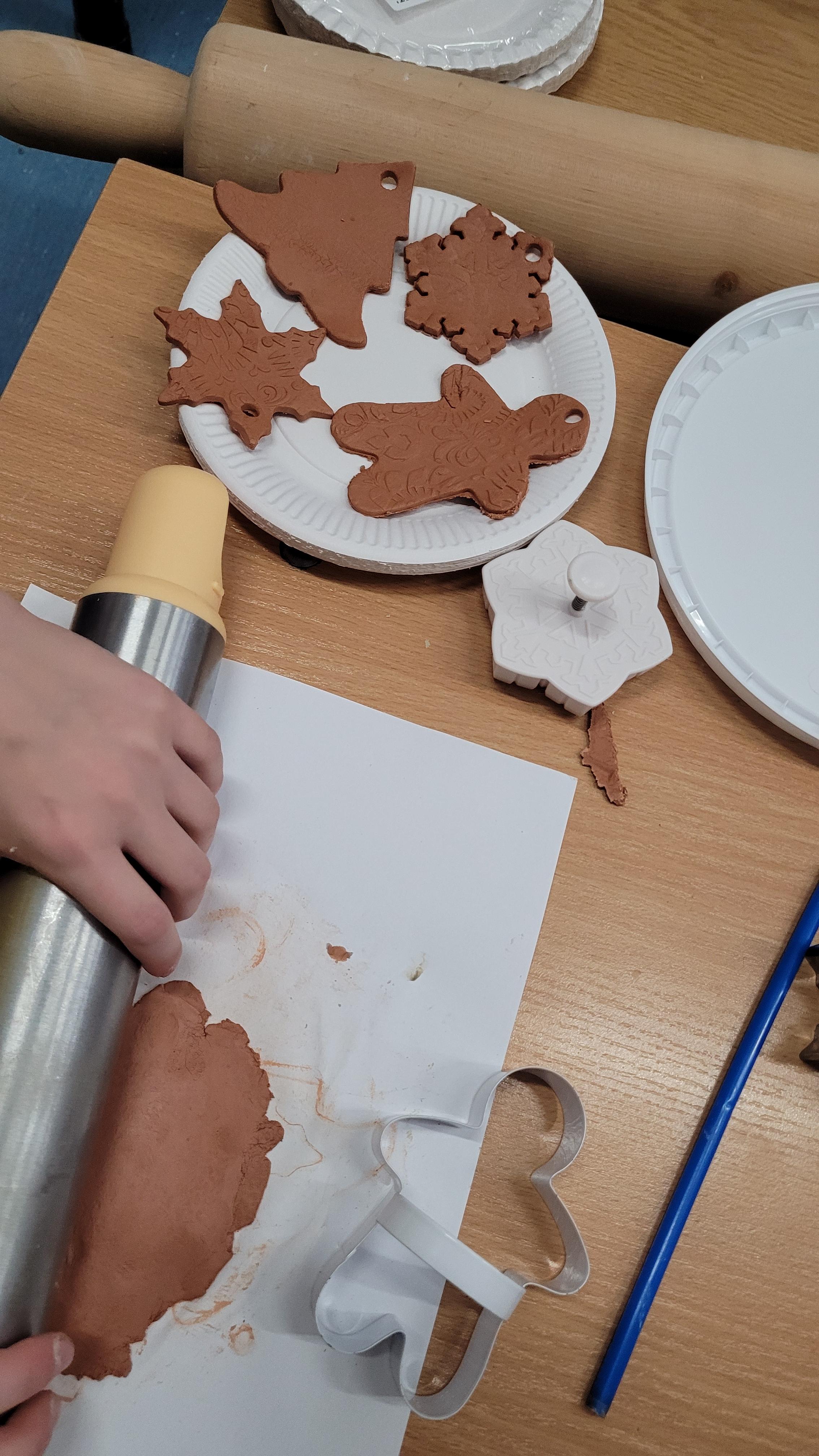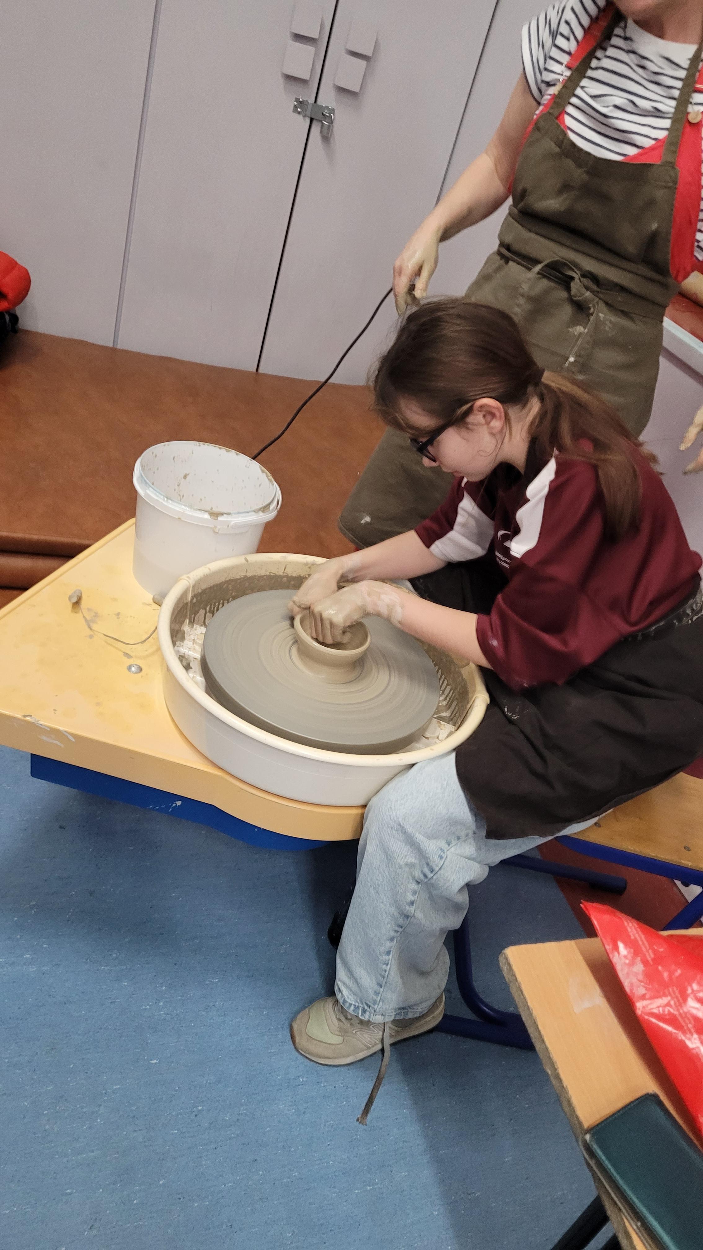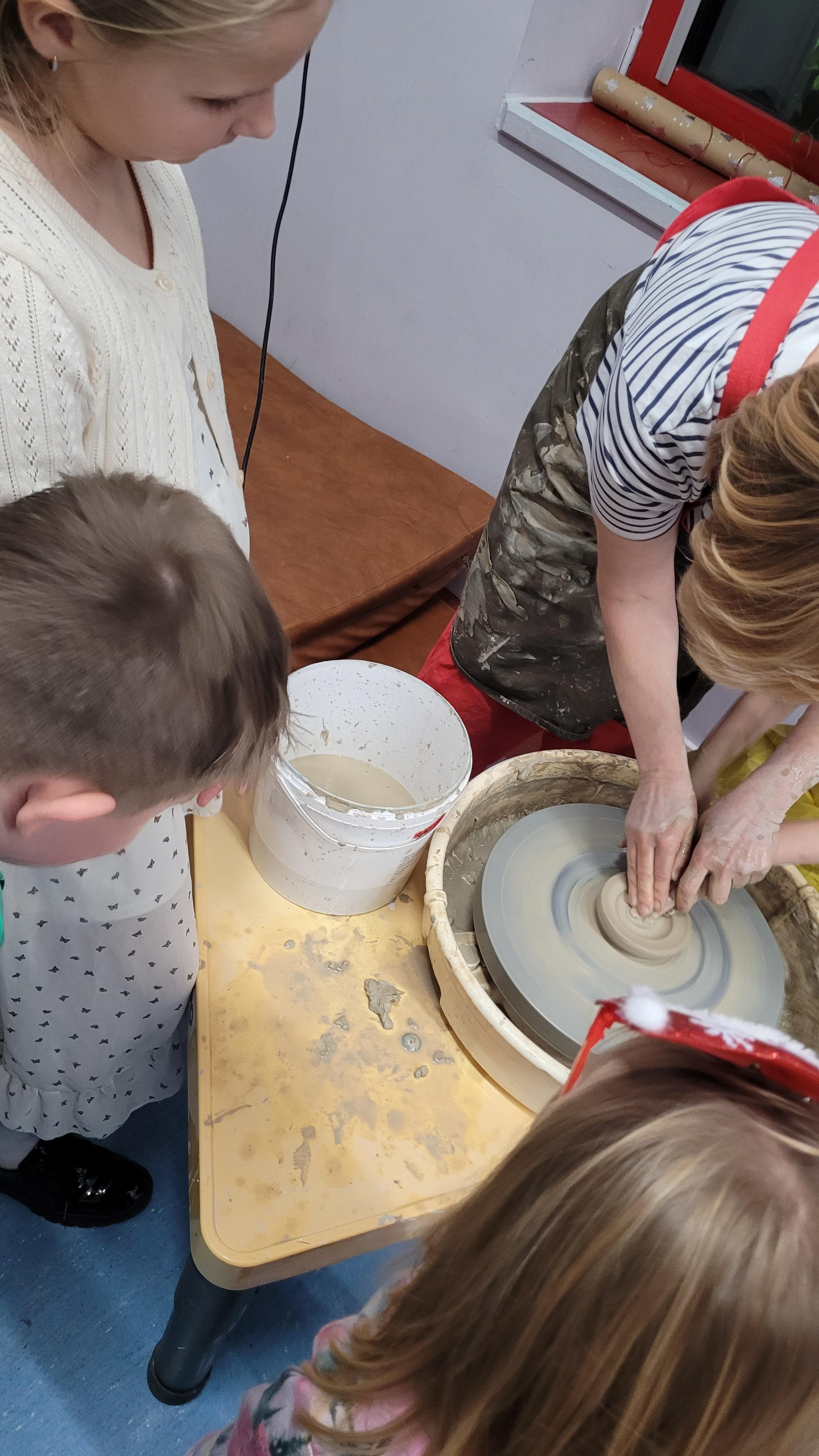 Jedną z najciekawszych atrakcji na szkolnym Kiermaszu Świątecznym były świetlicowe warsztaty ceramiczne pod kierownictwem Pani Elizy Sienkiewicz. Dzieci mogły stworzyć gliniane figurki, oraz przygotować gliniane zawieszki na choinkę - w ruch poszły foremki, wałki i mini szpatułki. Największym zainteresowaniem cieszyło się koło garncarskie. Można było spróbować swoich sił i stworzyć prawdziwe naczynia! Powstała przepiękna ceramika! Jej oryginalne formy i nowoczesny desing będą ozdobą świątecznych stołów. Dzieci doskonale się bawiły, dla większości z nich był to pierwszy kontakt z tego typu ekspresją artystyczną.