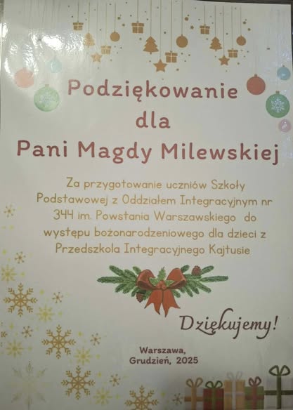 11 grudnia uczniowie z klasy 3a wraz z wychowwczynią panią Magdą Milewską, wybrali sie z przedstawieniem bożonarodzeniowym do Przedszkola Integracyjnego Kajtusie.