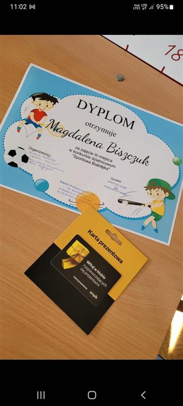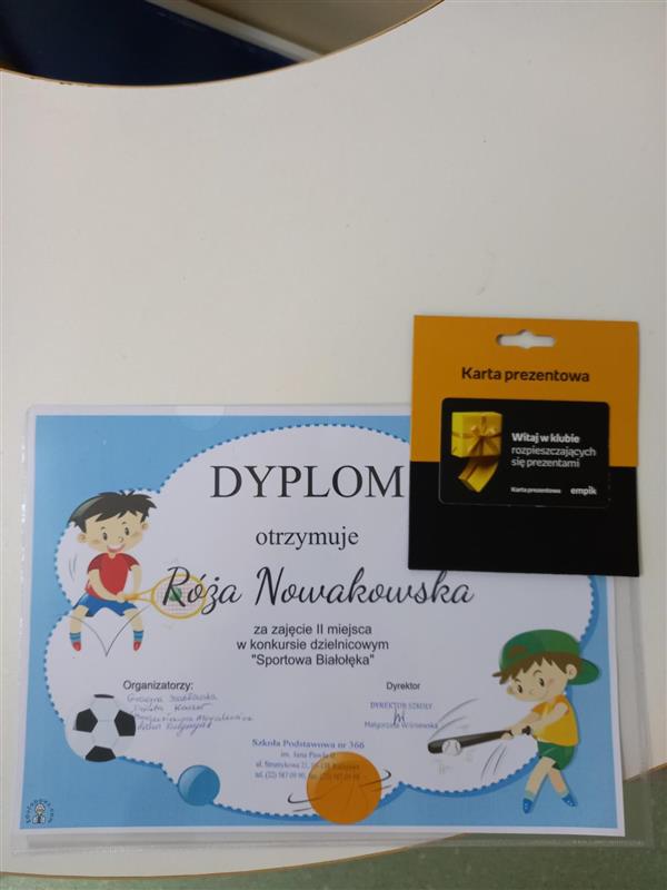 Wręczenie uczennicom dyplomów oraz nagród za udział w Międzyświetlicowym konkursie plastycznym " Sportowa Białołęka ". Gratulujemy zwyciężczyniom.