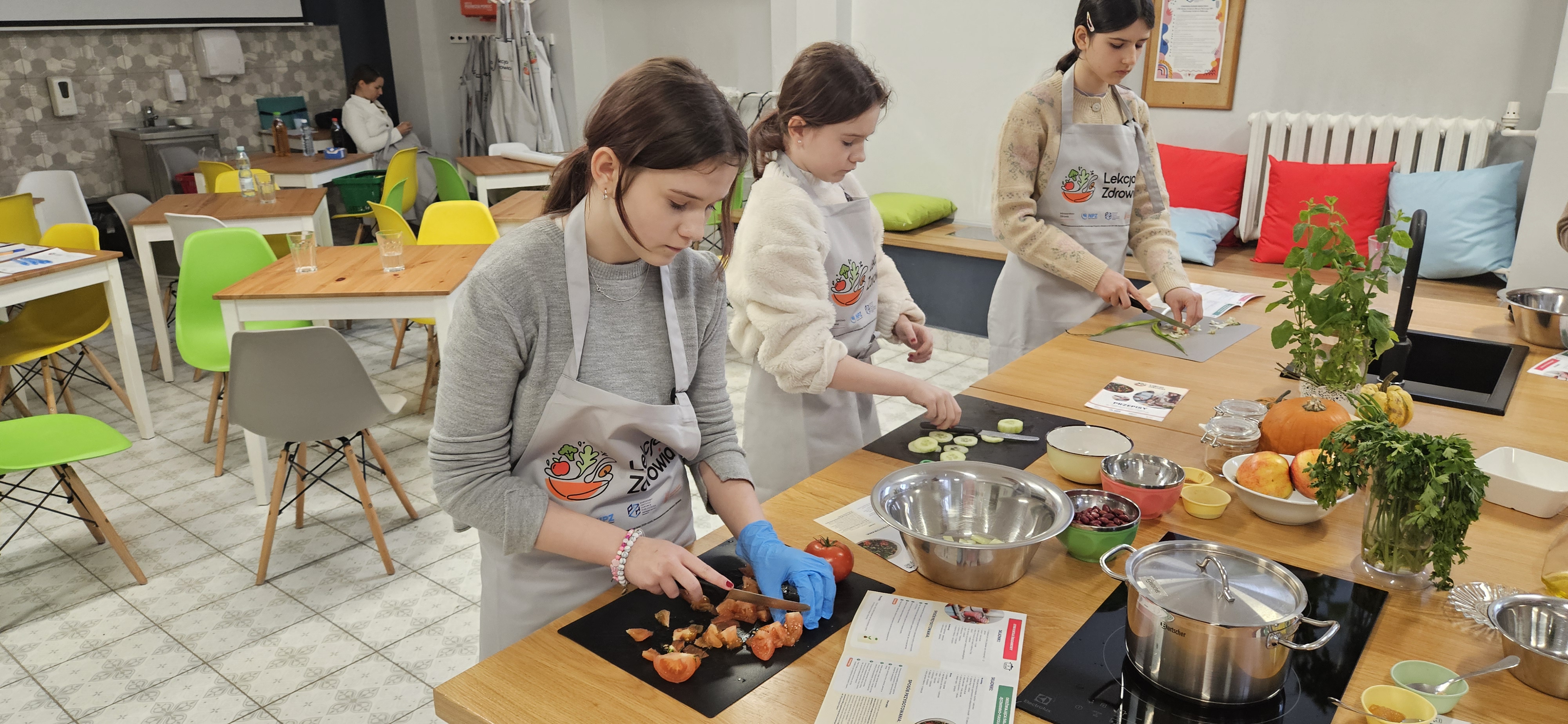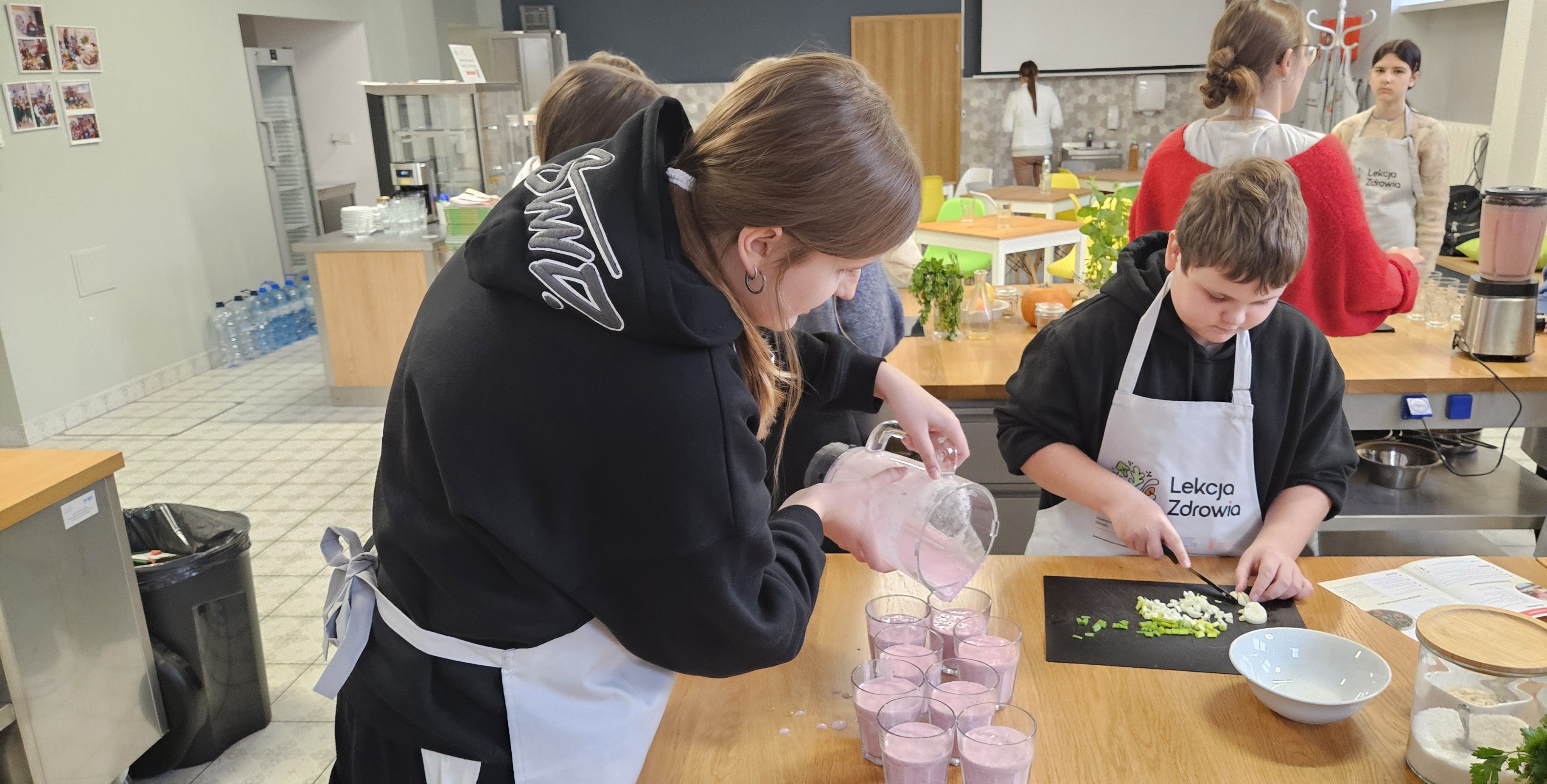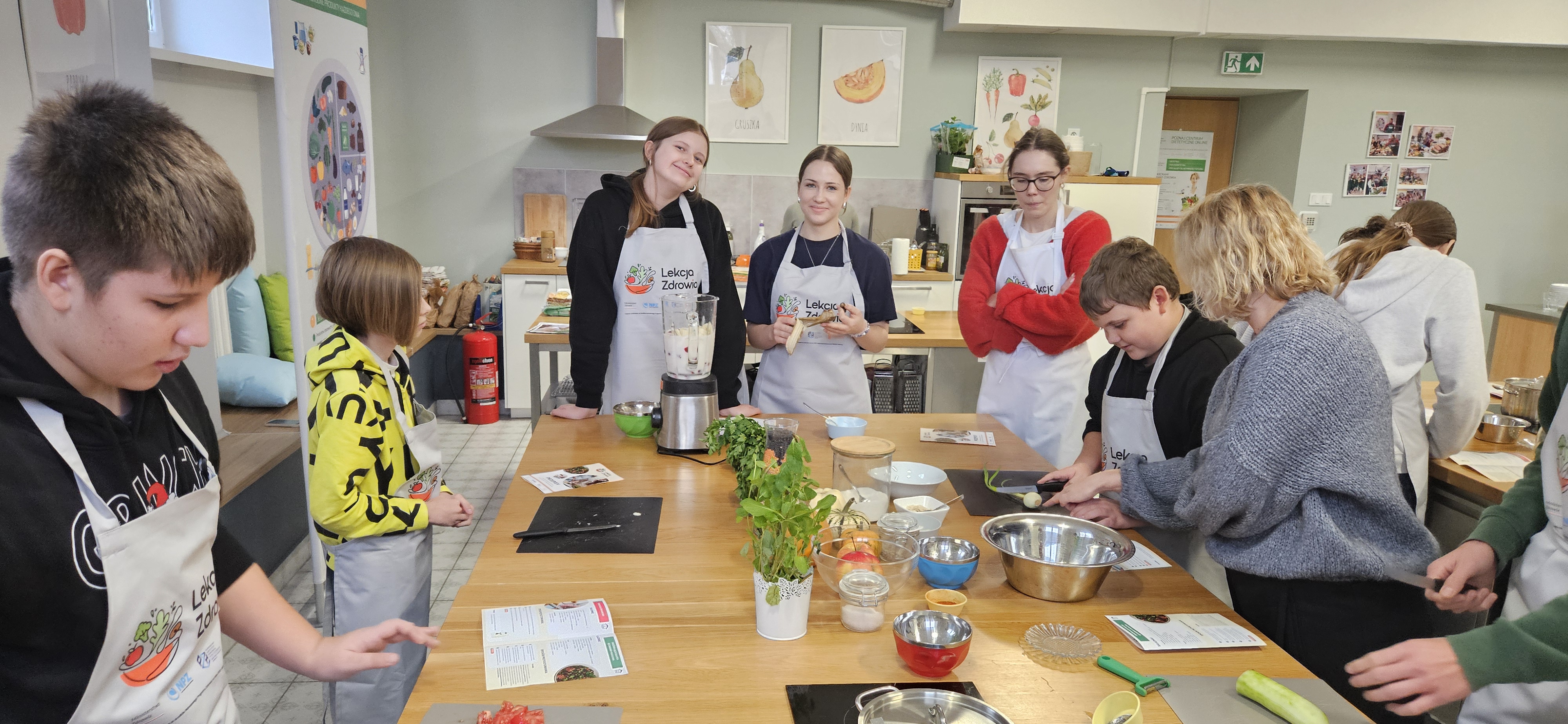 Klasa 7d uczestniczyła w warsztatach kulinarno-edukacyjnych ,, Lekcja Zdrowia", realizowaneych w ramach Narodowego Programu Zdrowia 2021-2025.