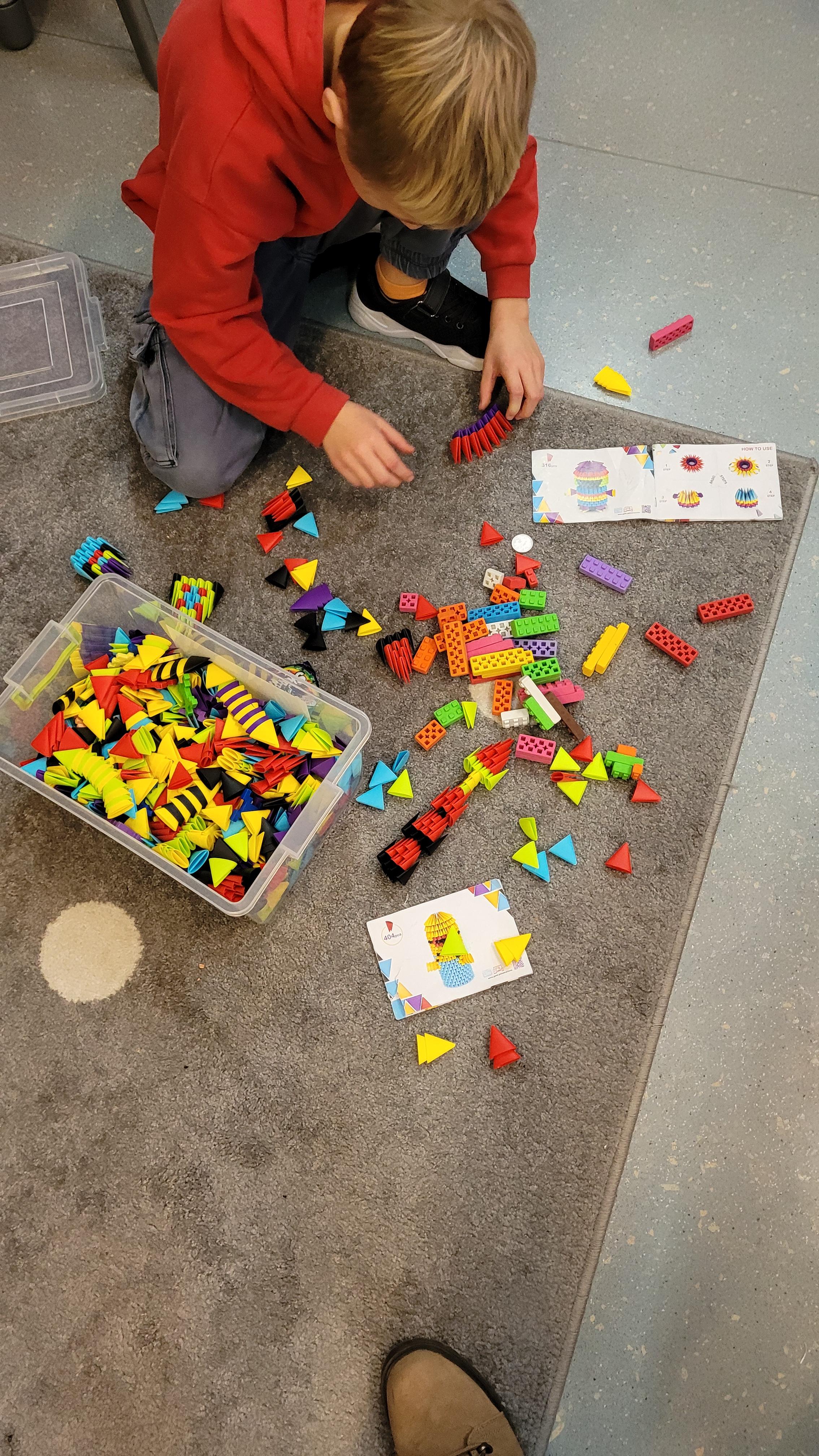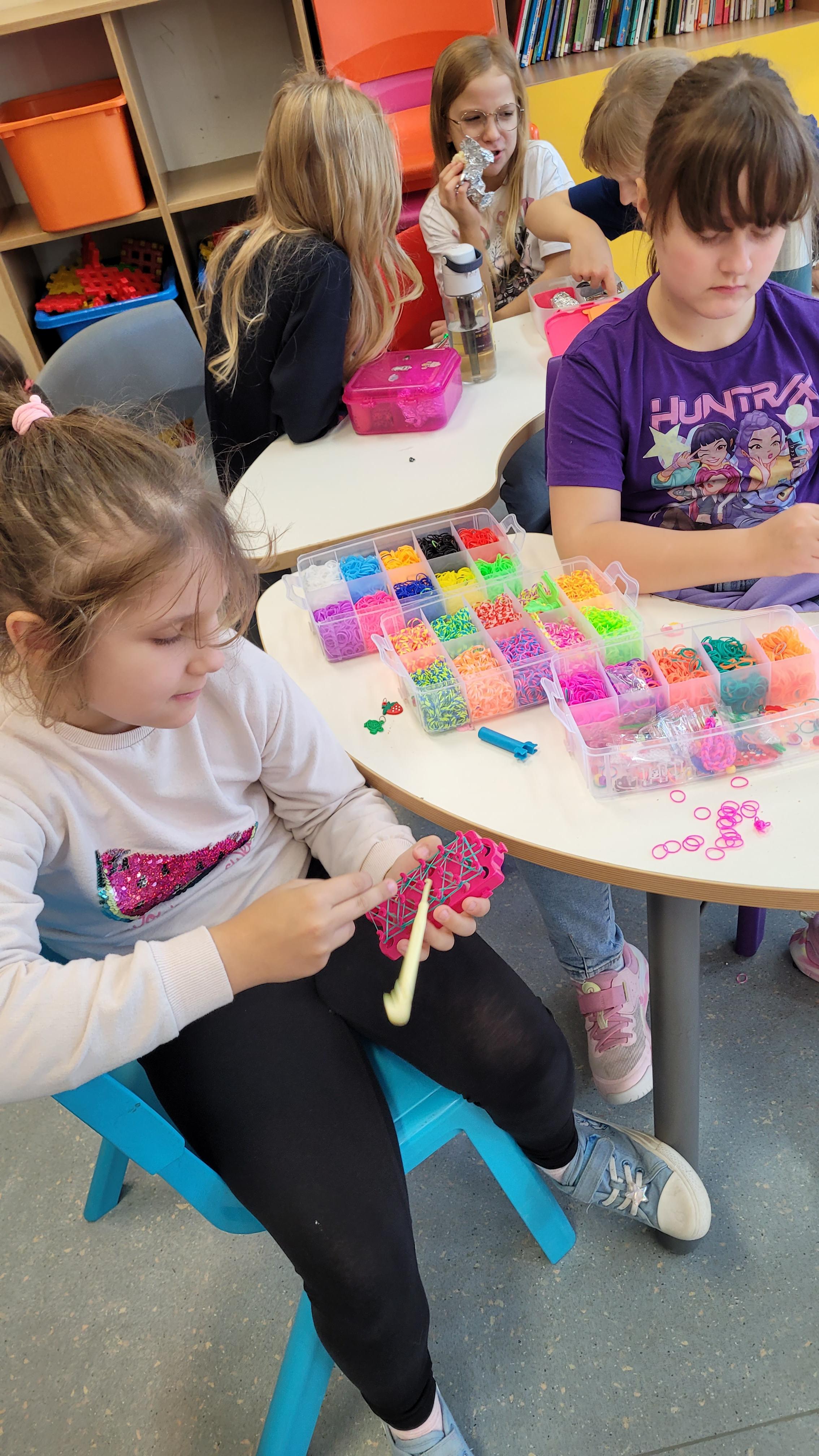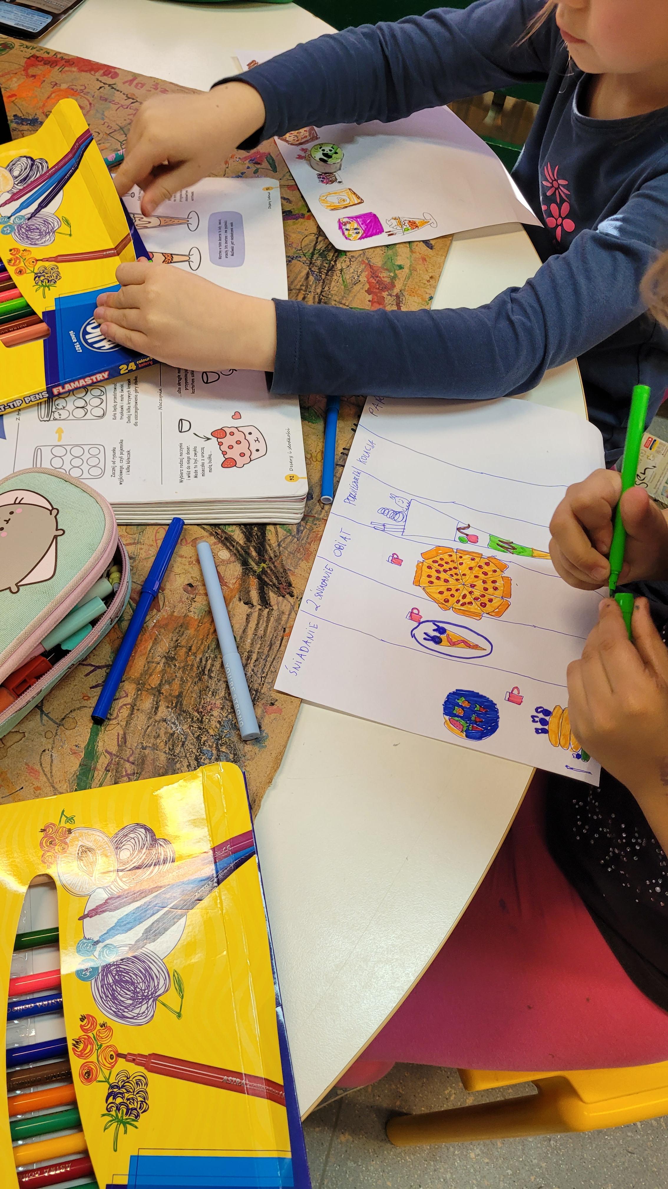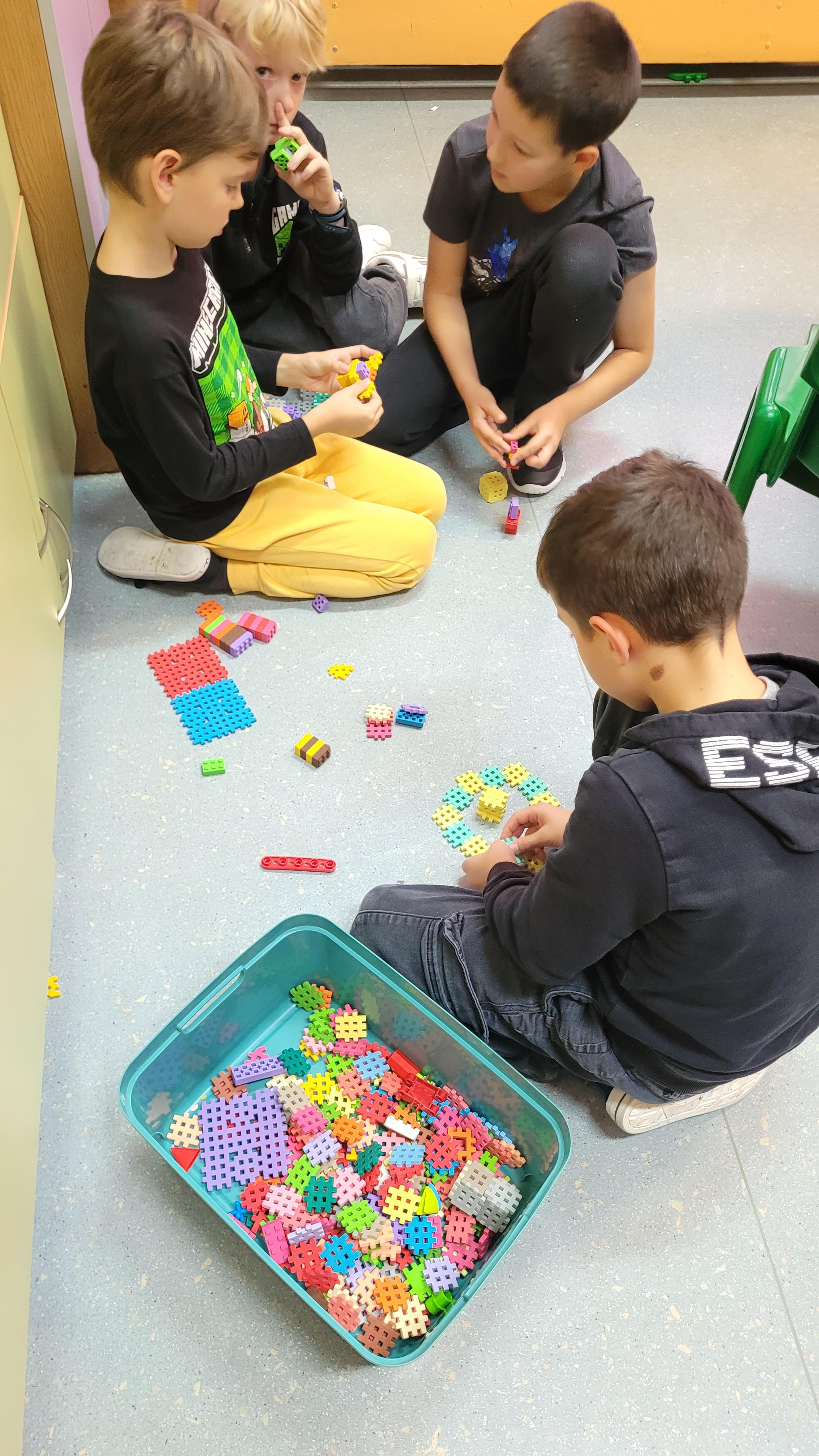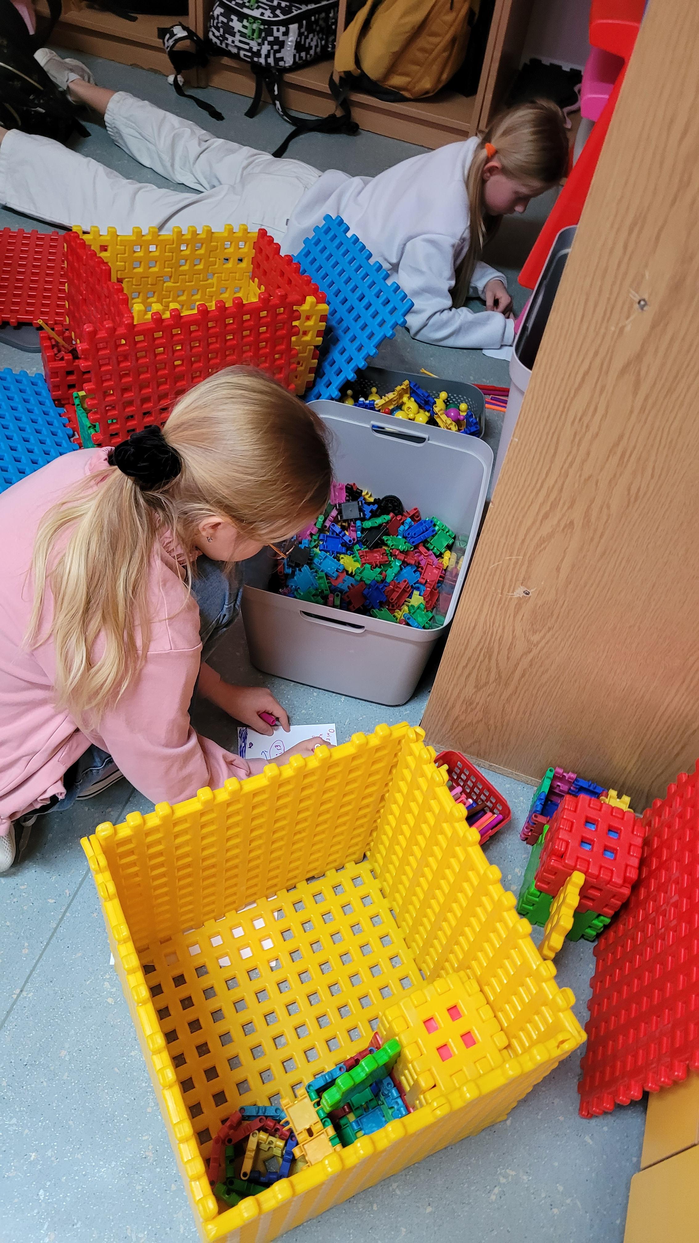Dzieci chętnie konstruują z klocków, tworząc budowle, pojazdy i fantastyczne światy, które rozwijają ich wyobraźnię oraz umiejętność logicznego myślenia. Nie brakuje też miejsca na kolorowanki – dzięki nim nasi uczniowie ćwiczą precyzję, wyrażają swoją kreatywność i odpoczywają przy ulubionych barwach.