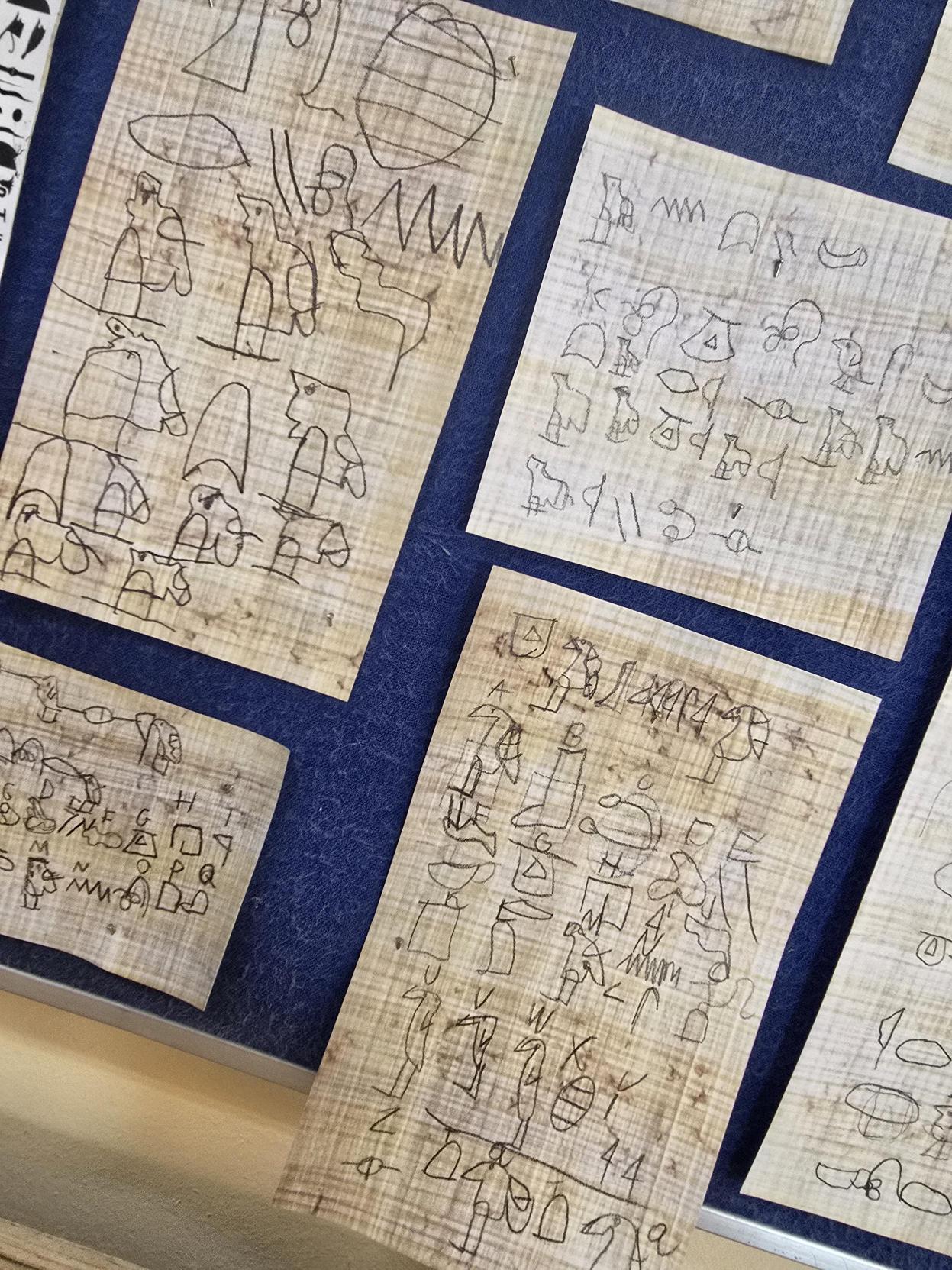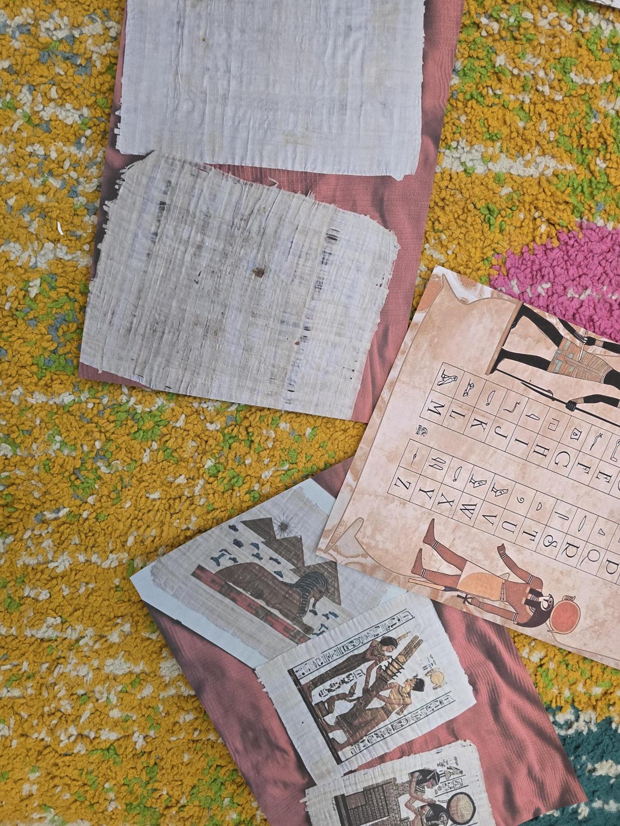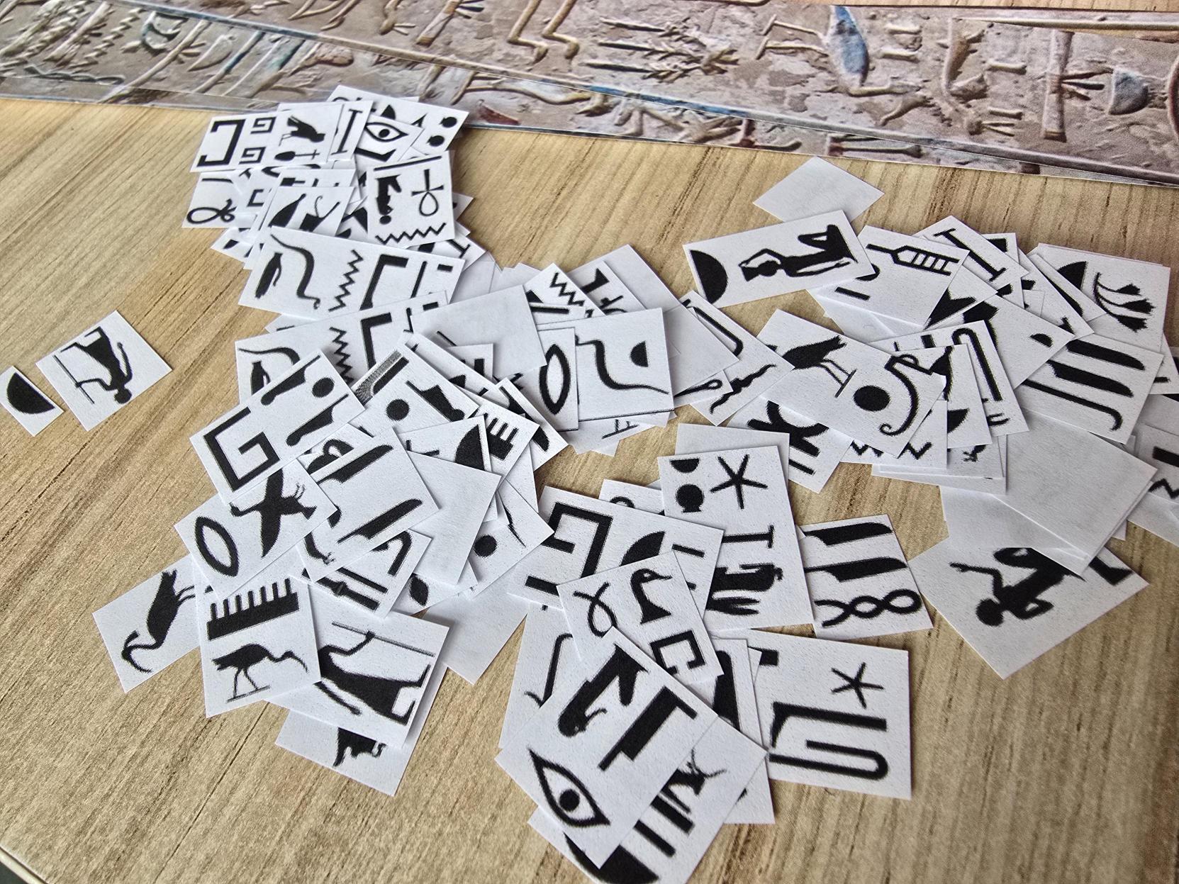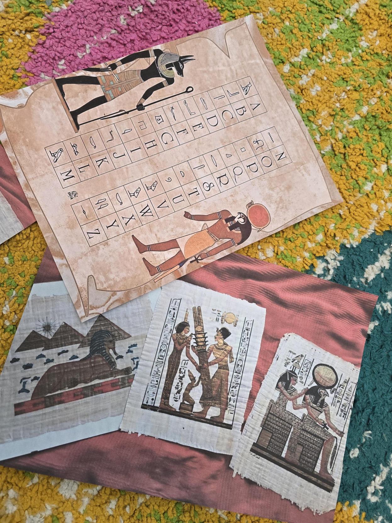 Pierwszy etap: Uczniowie poznali podstawy pisma hieroglificznego oraz jego znaczenie w kulturze starożytnego Egiptu. Wyjaśnienie uczniom, że służyły do zapisywania ważnych wydarzeń historycznych, dokumenty i aż po zdobienie świątyń i grobowców. Obejrzeli przykładowe inskrypcje, dowiedzieli się czym był papirus. Uczniowie tłumaczyli swoje imiona na symbole oraz tworzyli własne zapisy na papirusach. Dowiedzieli się w jaki sposób powstawały papirusy i z jakich roślin można je było uzyskać. rozwijając kreatywność, sprawność manualną i wyobraźnię.