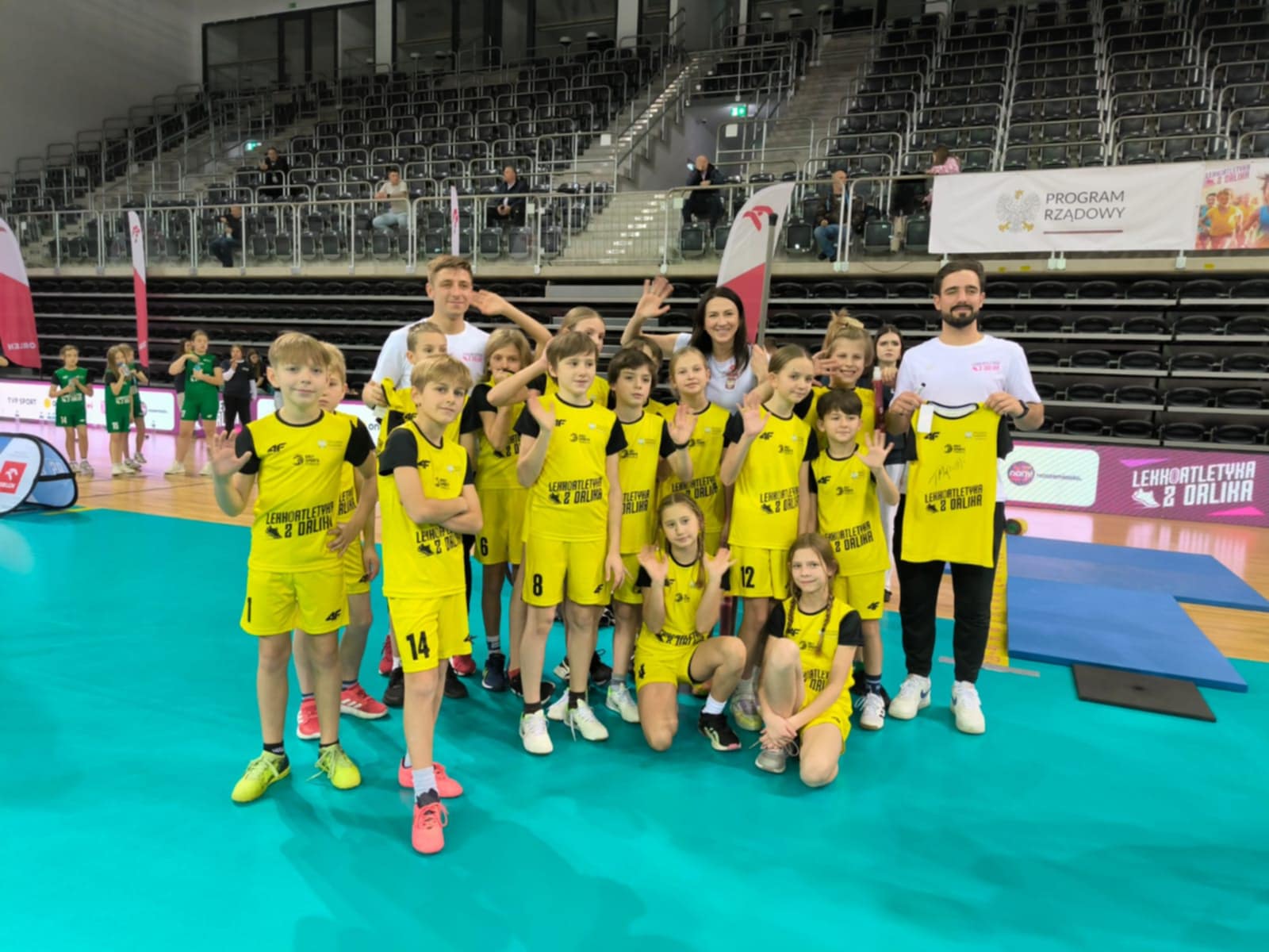 Uczniowie klas IV reprezentowali naszą szkołę w ogólnopolskich finałach „Lekkoatletyka z Orlika”. Po emocjonujących zmaganiach w 8 konkurencjach lekkoatletycznych zajęliśmy 6. miejsce w klasyfikacji generalnej! W finałowej konkurencji – biegu sztafetowym – nasi zawodnicy pokazali prawdziwego ducha walki i wygrali, co pozwoliło nam awansować na 5. miejsce w Polsce! Zawody odbyły się na Atlas Arenie w Łodzi, a nasi uczniowie mieli okazję spotkać wielkich mistrzów i reprezentantów Polski, m.in.: