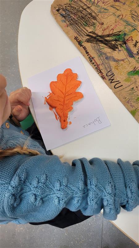 Dzieci własnoręcznie tworzyły liście z masy solnej, a następnie malowały je farbami, nadając im barwy prawdziwej jesieni – odcienie czerwieni, złota, pomarańczu i brązu pięknie oddały klimat tej kolorowej pory roku.