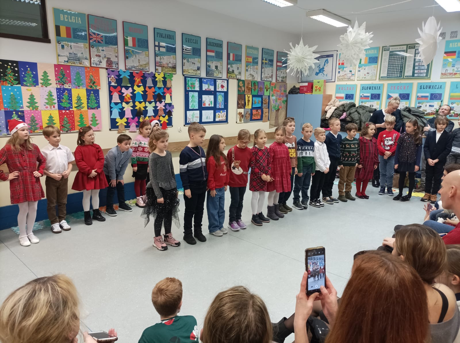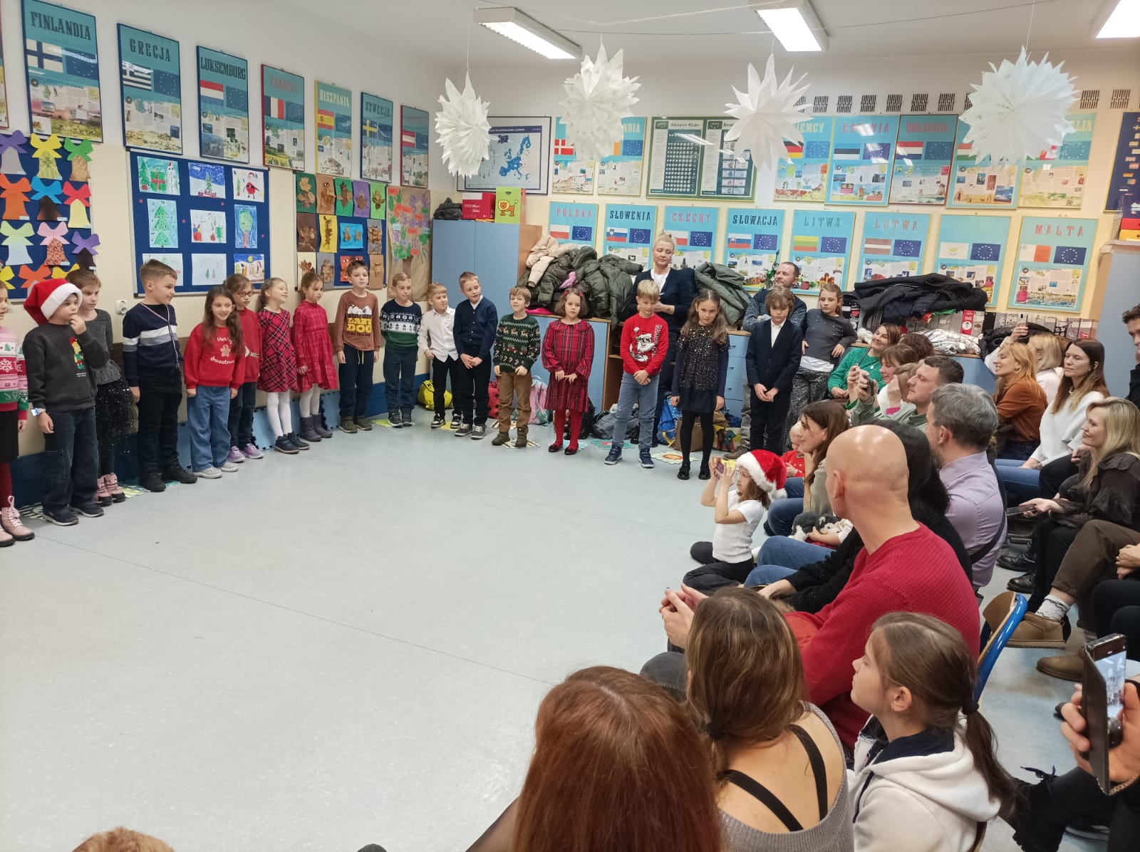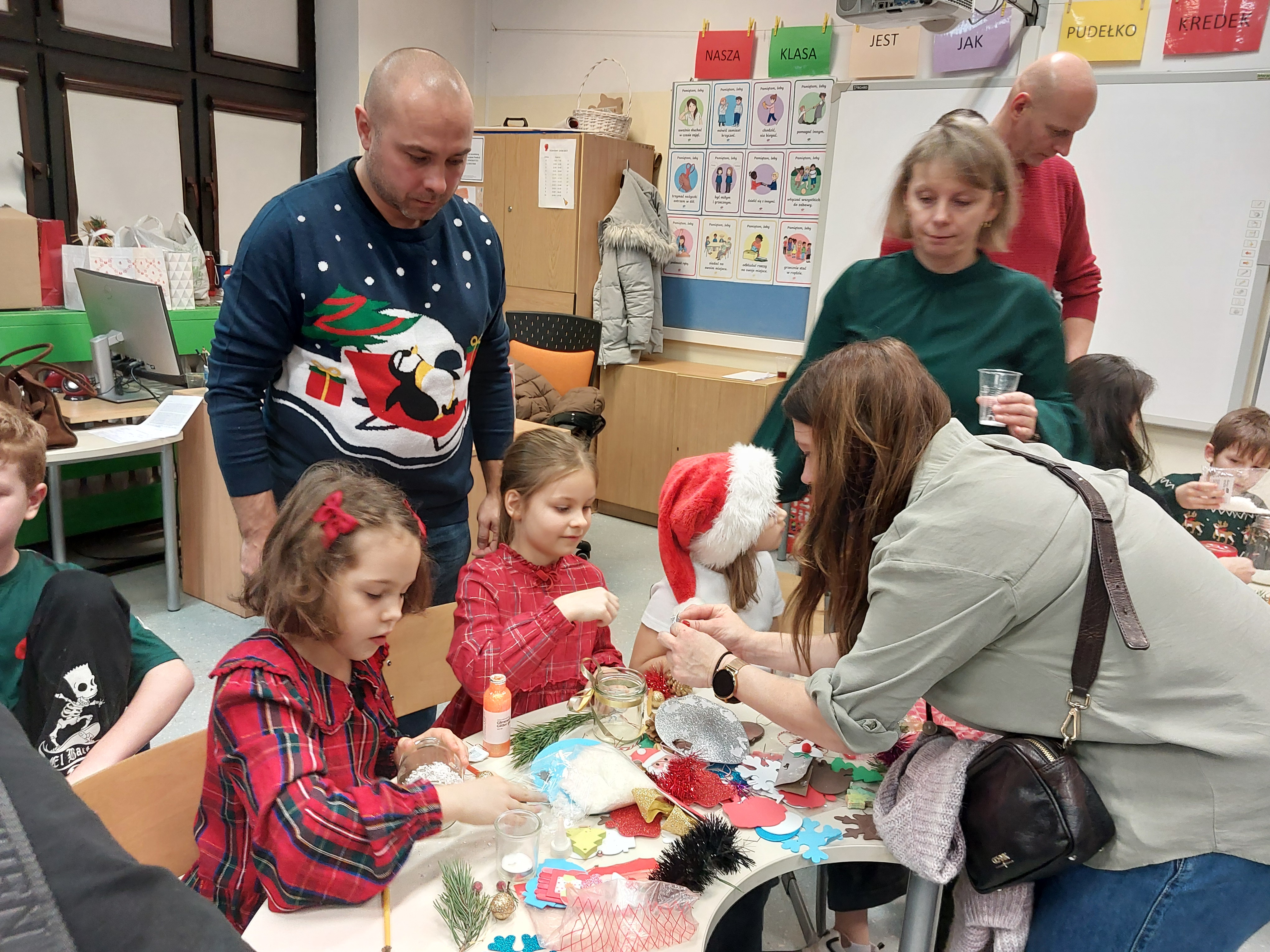 8 grudnia odbyło się spotkanie świąteczne rodziców i dzieci z klasy 2C. Przebiegło ono w miłej i ciepłej atmosferze, sprzyjającej wspólnemu spędzaniu czasu. Dzieci wystąpiły dla rodziców z wierszykami, piosenkami, pastorałką i kolędami. Po przedstawieniu rodzice i dzieci wzięli udział w warsztatach świątecznych. Podczas warsztatów dzieci wraz z rodzicami z zaangażowaniem wykonywały stroiki świąteczne, rozwijając swoją kreatywność i zdolności manualne. Stroiki zostały przygotowane z myślą o kiermaszu świątecznym. Były bardzo pomysłowe i starannie wykonane. Spotkanie to wprowadziło nastrój świąteczny w klasie.