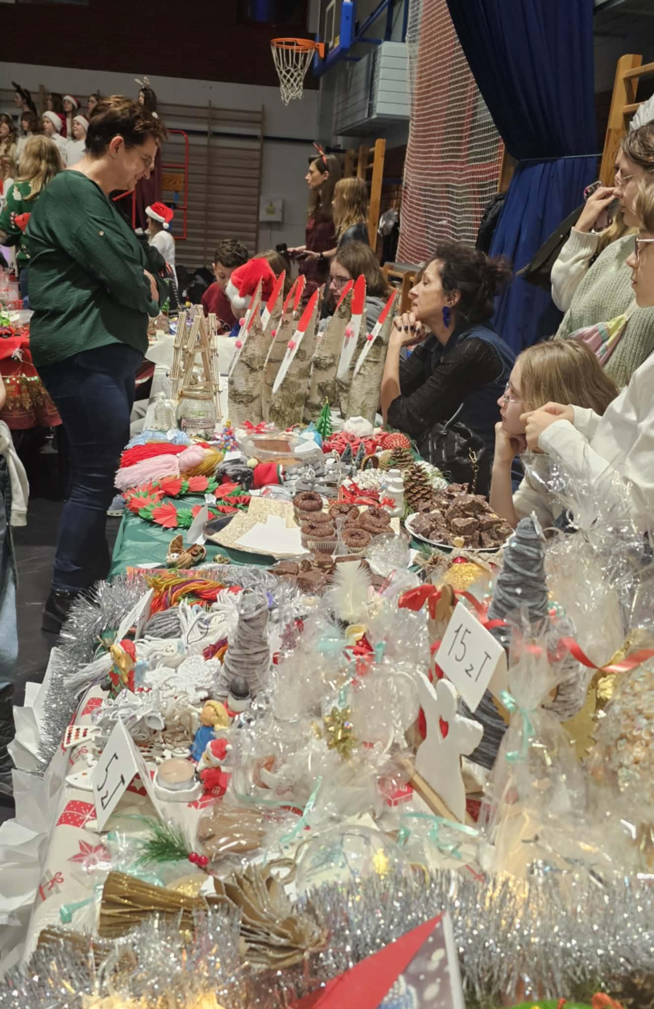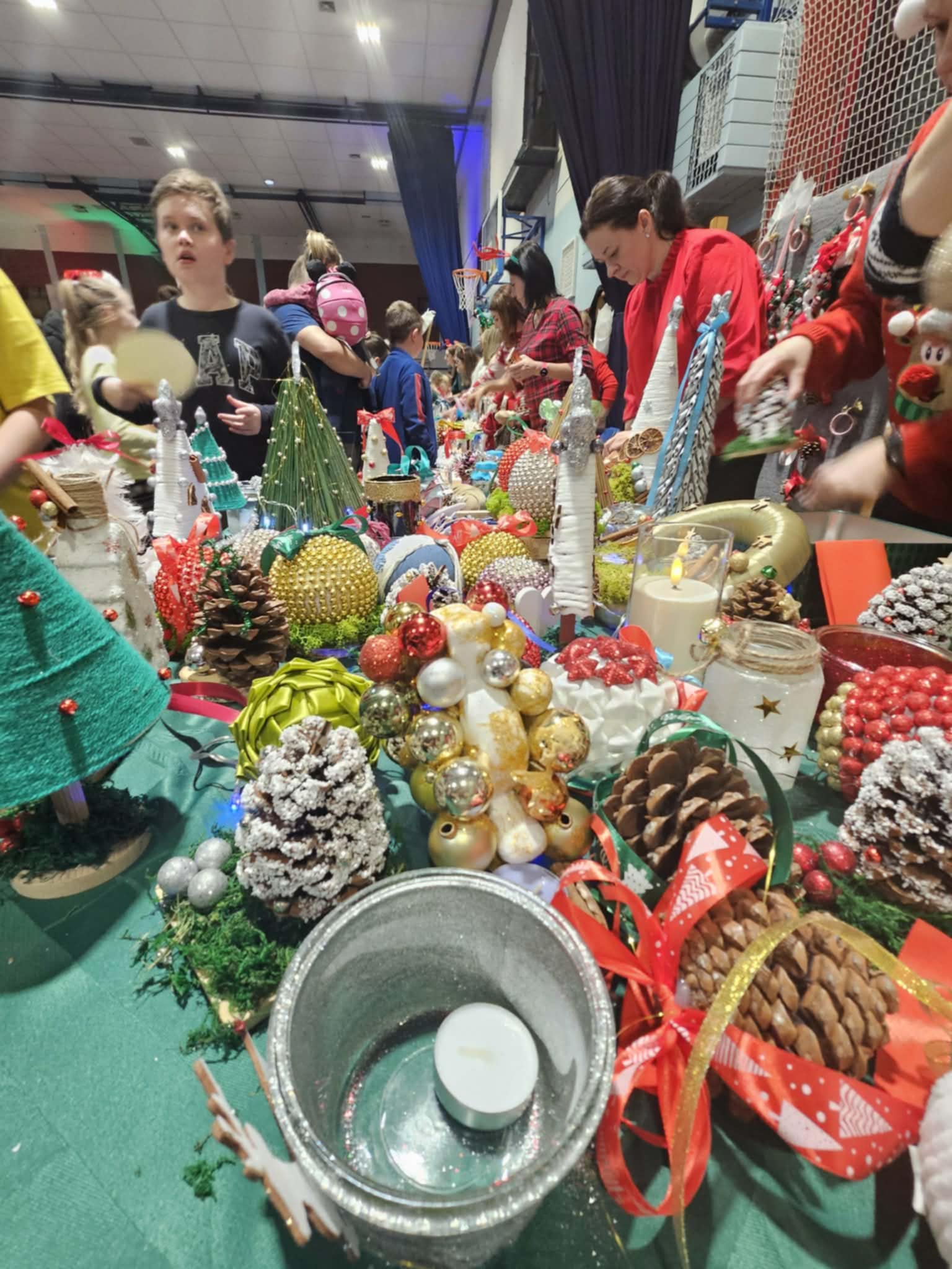 Co czekało na odwiedzających? Kiermasz obfitował w atrakcje i piękne arcydzieła stworzone przez uczniów, nauczycieli oraz rodziców. Własnoręcznie wykonane ozdoby świąteczne – pełne blasku, fantazji i dziecięcej kreatywności. Słodka kawiarenka szkolna – domowe wypieki, pierniki, babeczki i rozgrzewające napoje. Atrakcje w hali BOS – warsztaty, konkursy, zabawy i mnóstwo niespodzianek dla małych i dużych