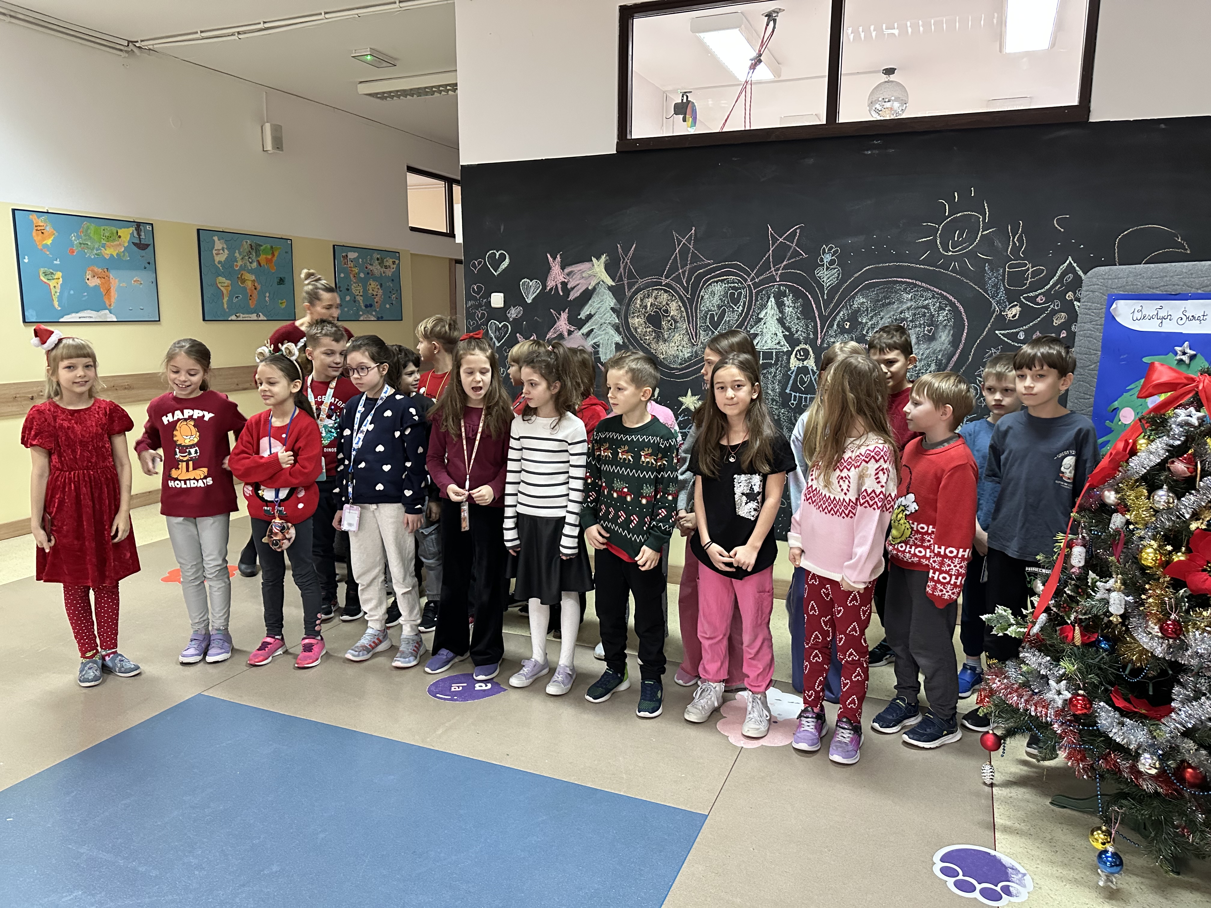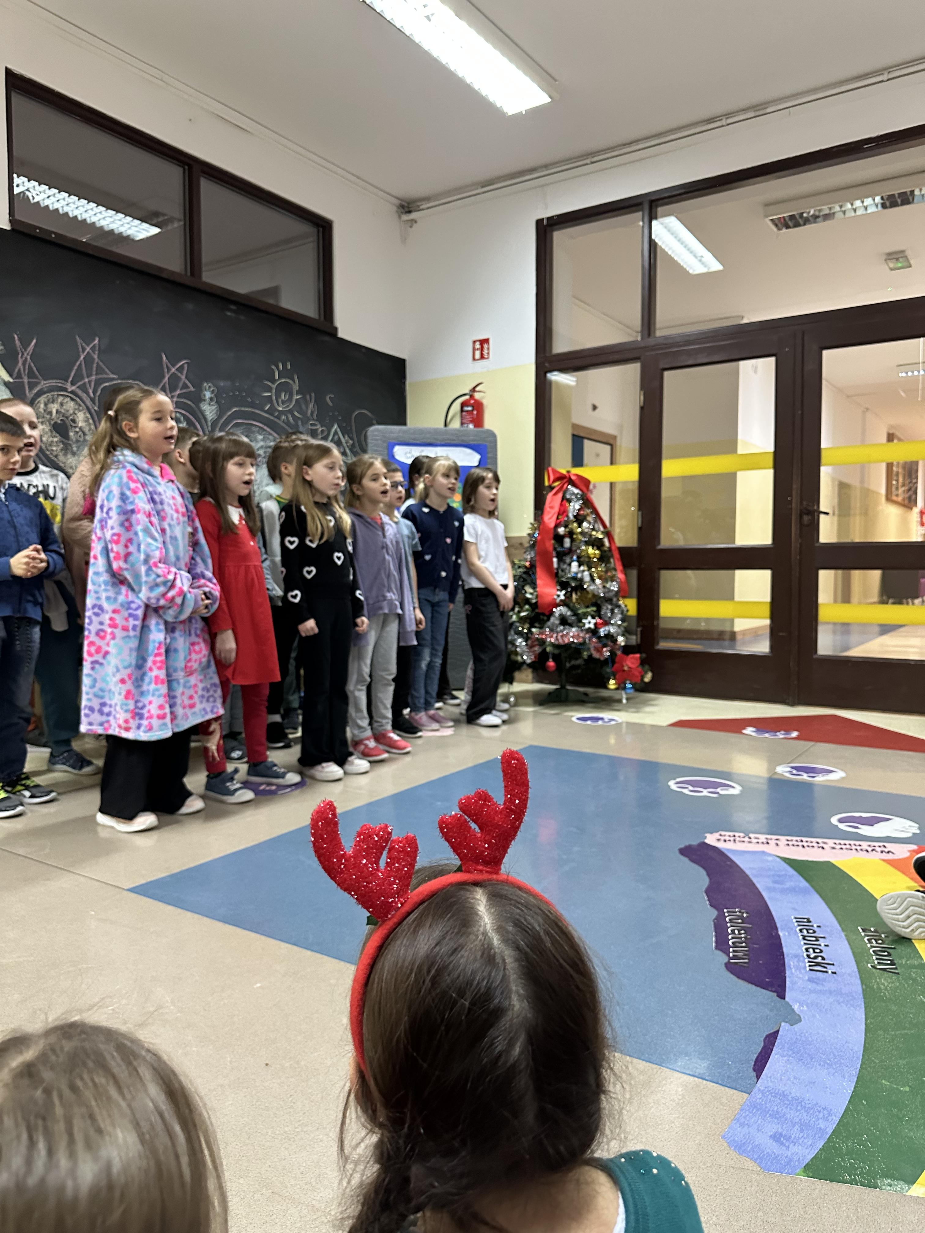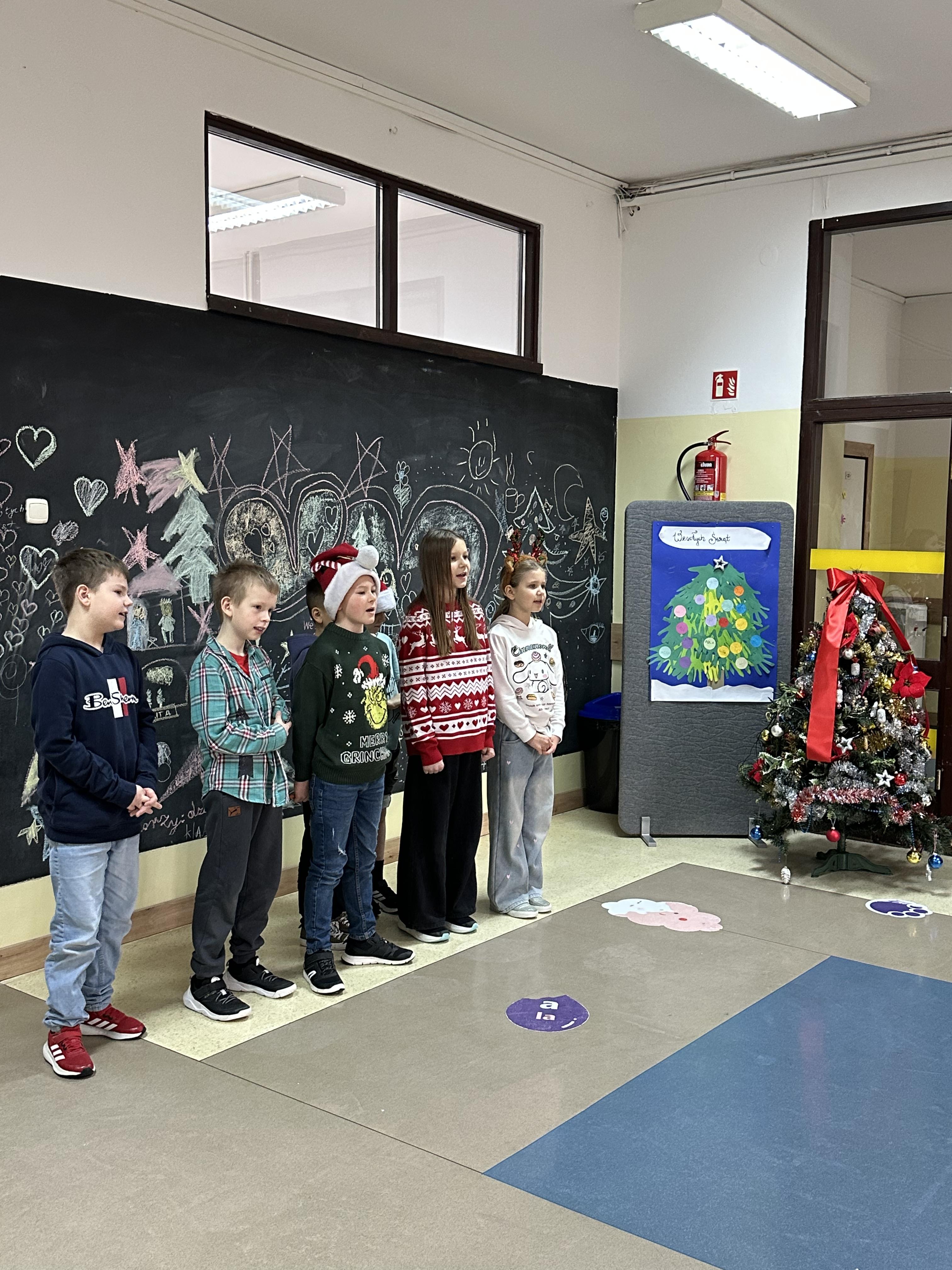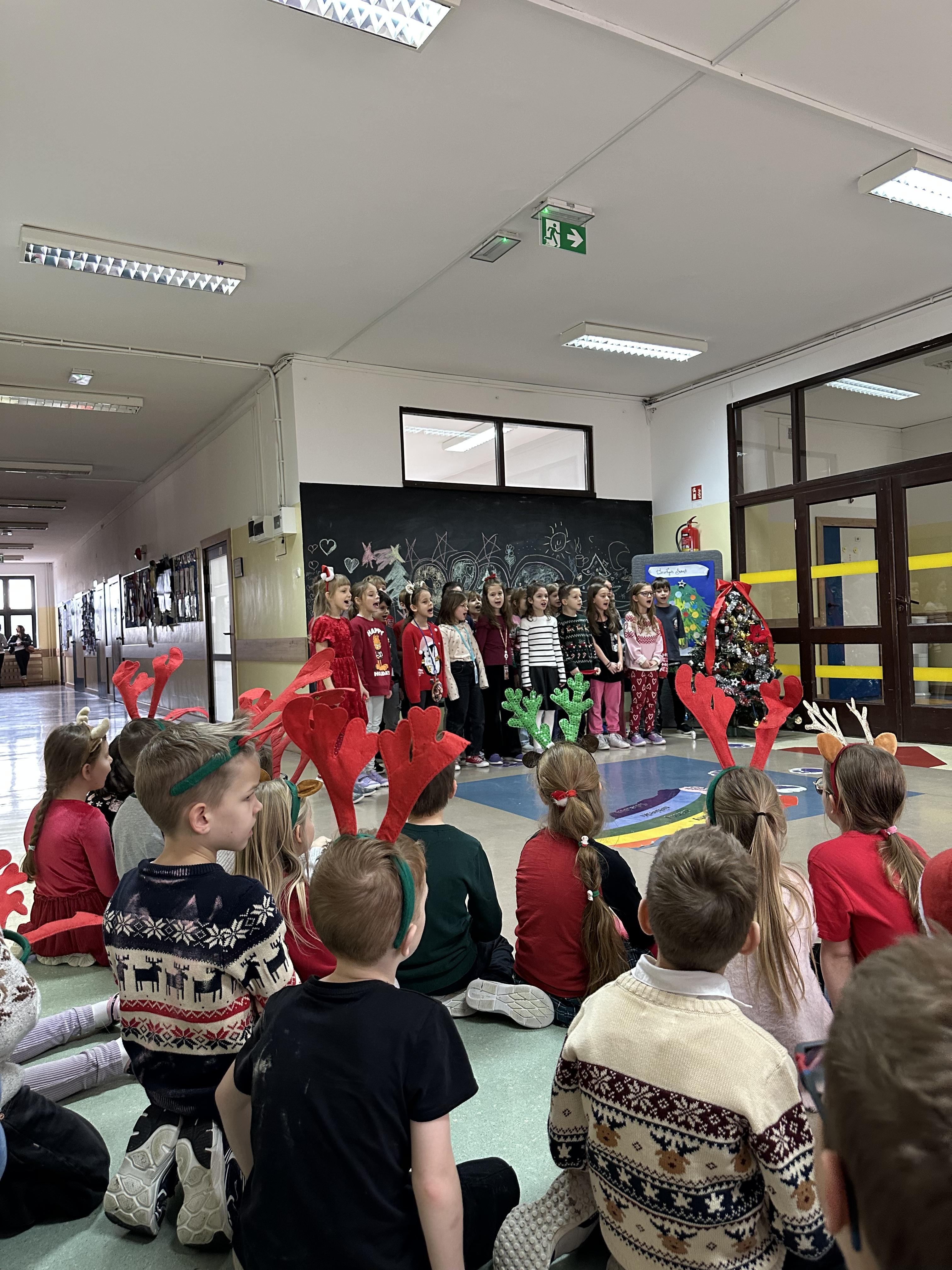 Dzieci z wielkim zaangażowaniem i radością śpiewały znane utwory, tworząc wyjątkową, pełną ciepła i świątecznego nastroju atmosferę. Był to czas wspólnego przeżywania magii Świąt Bożego Narodzenia, integracji oraz pielęgnowania tradycji i wartości, które łączą pokolenia.