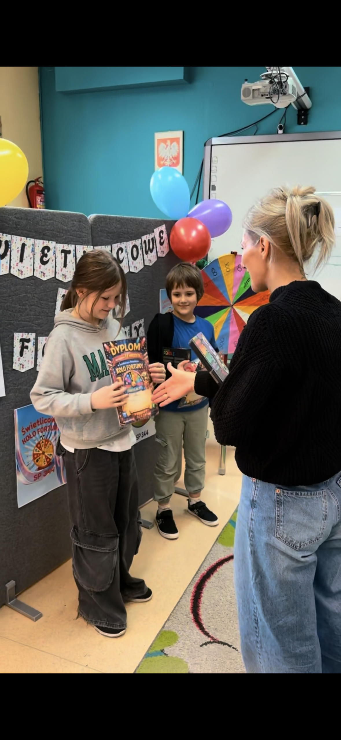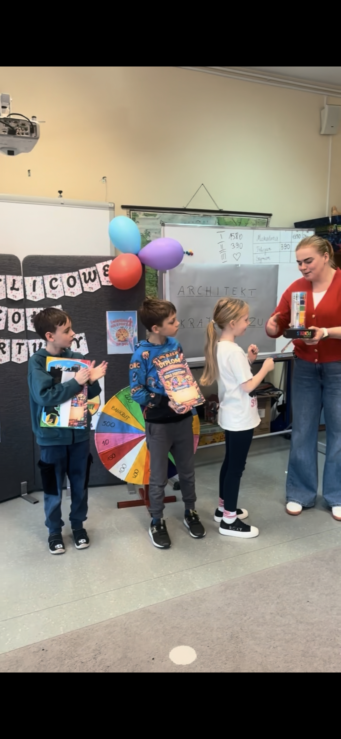 Na zwycięzców oraz wszystkich uczestników czekały atrakcyjne nagrody, które były miłym zwieńczeniem wspólnej zabawy. Teleturniej „Koło fortuny” okazał się świetnym sposobem na integrację uczniów oraz rozwijanie ich umiejętności w przyjaznej i radosnej atmosferze.