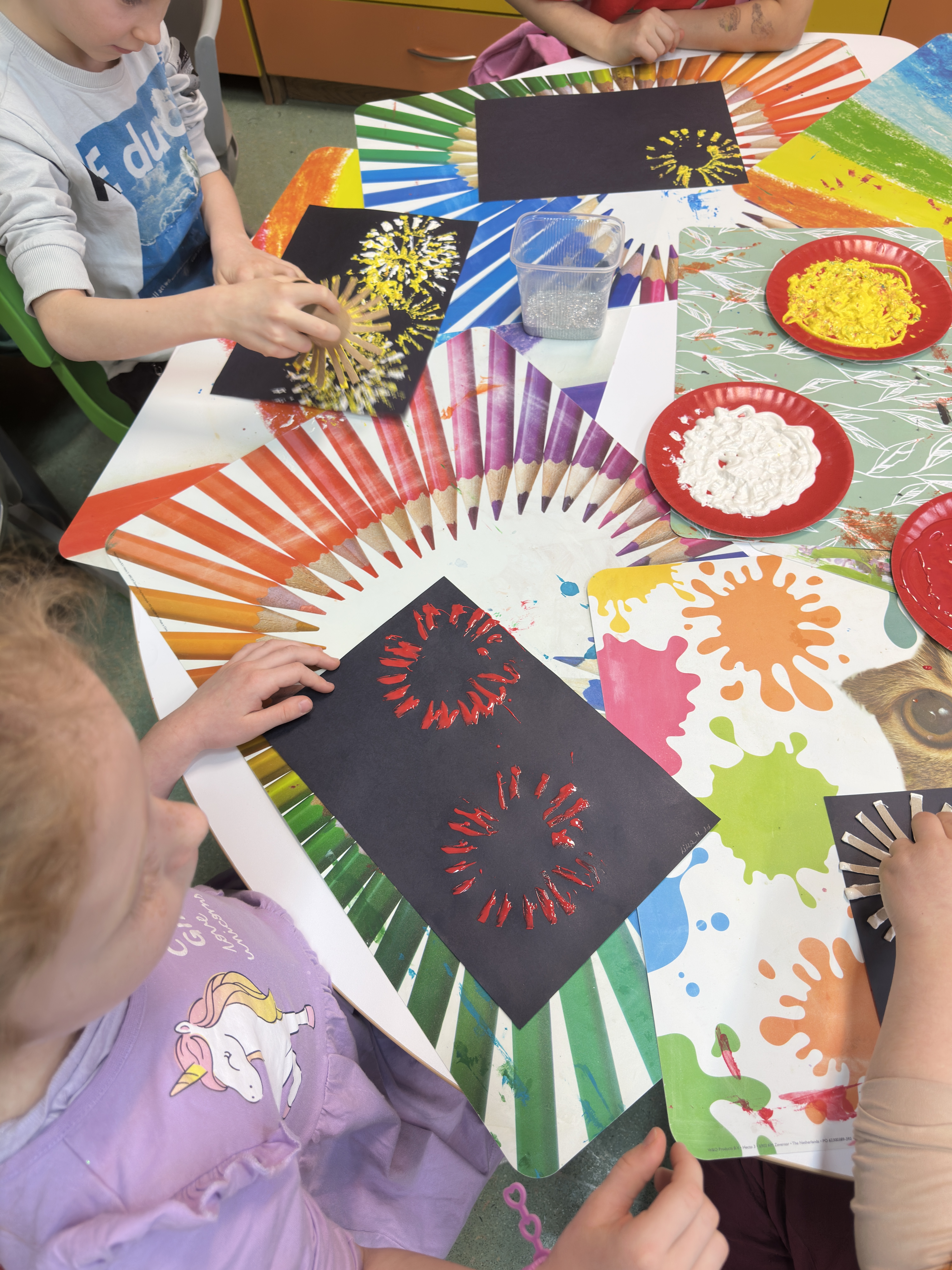 Fajerwerki – noworoczne zajęcia plastyczne metodą stemplowania