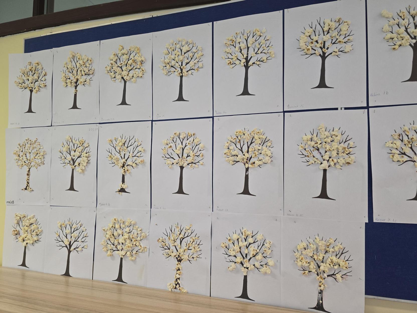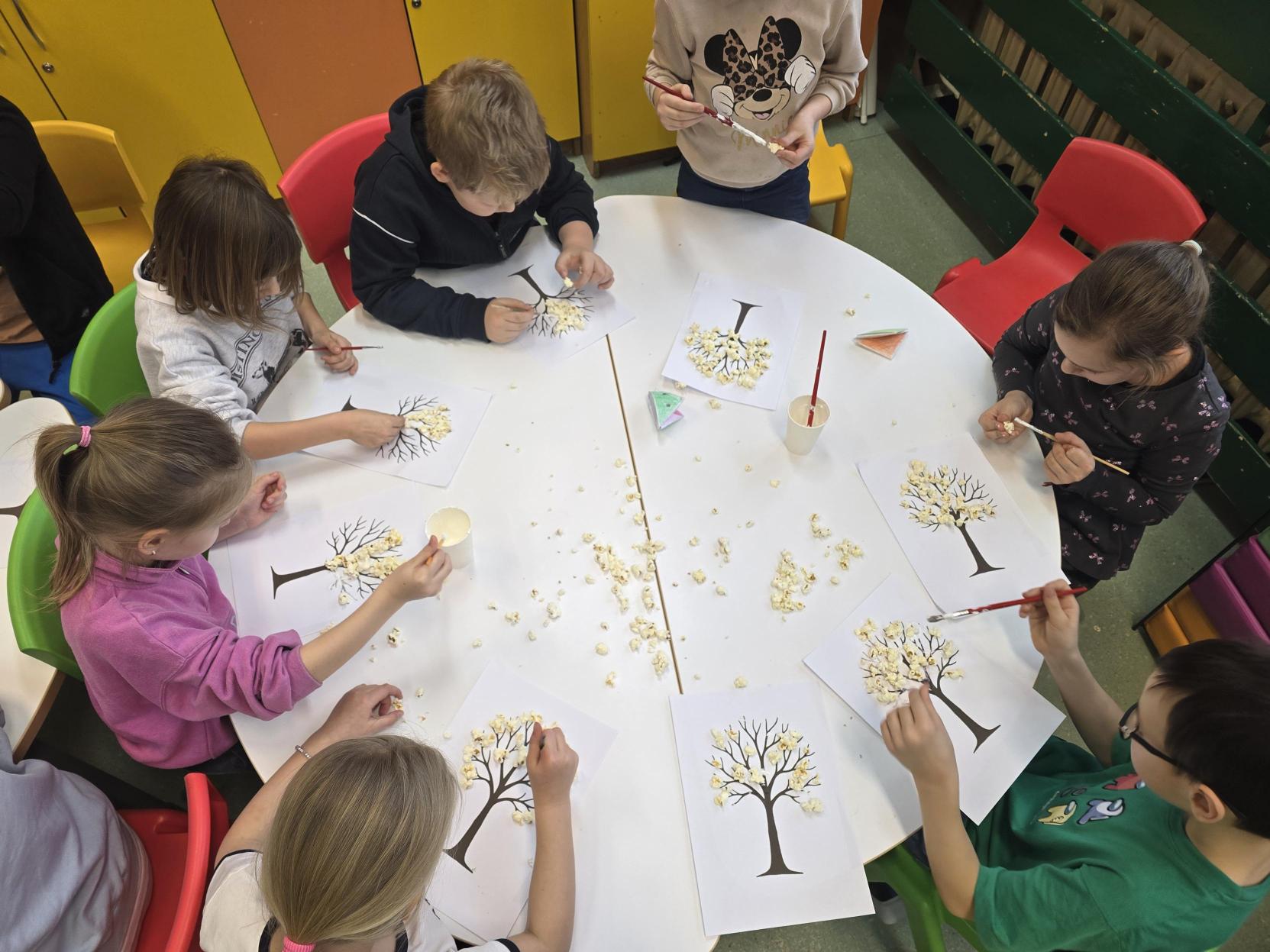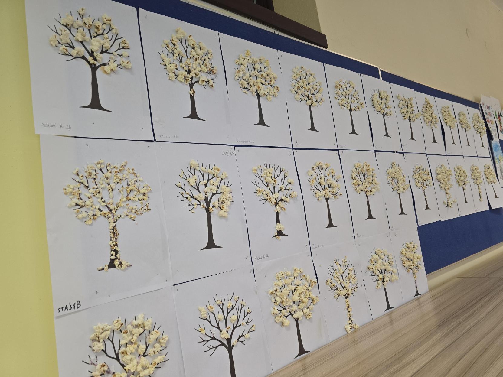 Uczniowie wykonali zimowe drzewka wykorzystując klej oraz popcorn który imitował śnieg na gałęziach. Zostały zastosowane metody aktywizujące następujące: metoda praktycznego działania poprzez nakładanie kleju, dobrania miejsca i przyklejania popcornu ucząc się przez działanie. Zastosowano również metodę sensoryczną - kontakt z różnymi fakturami pobudzając zmysły i integrację sensoryczną. Zastosowano metodę indywidualizacji - dzieci pracowały w swoim własnym tempie i wg własnego pomysłu.