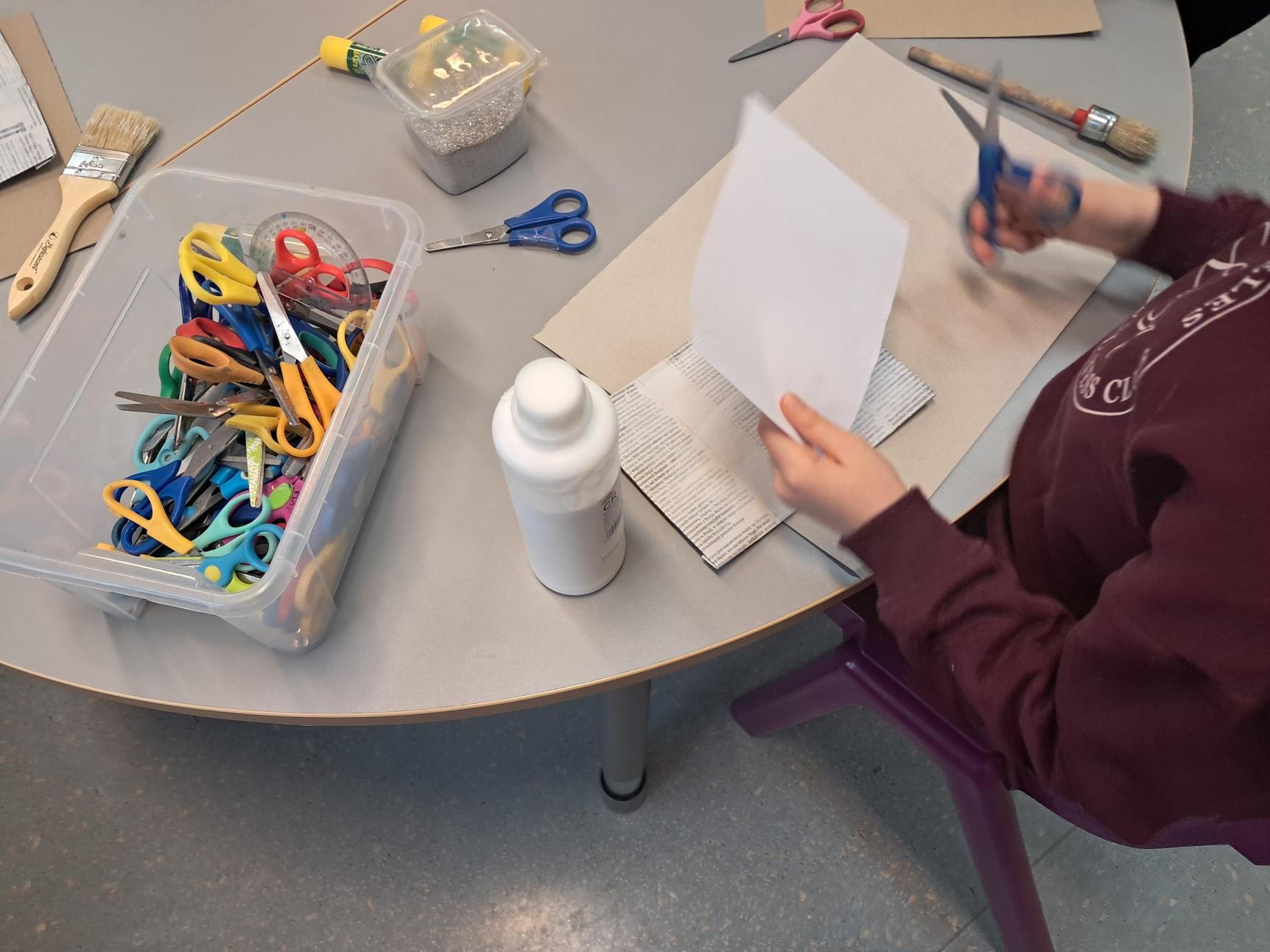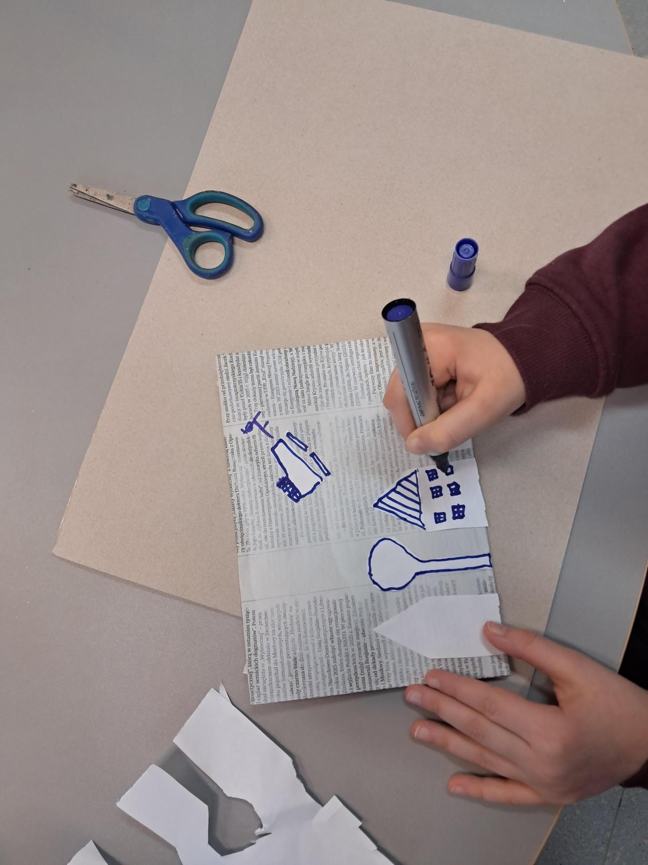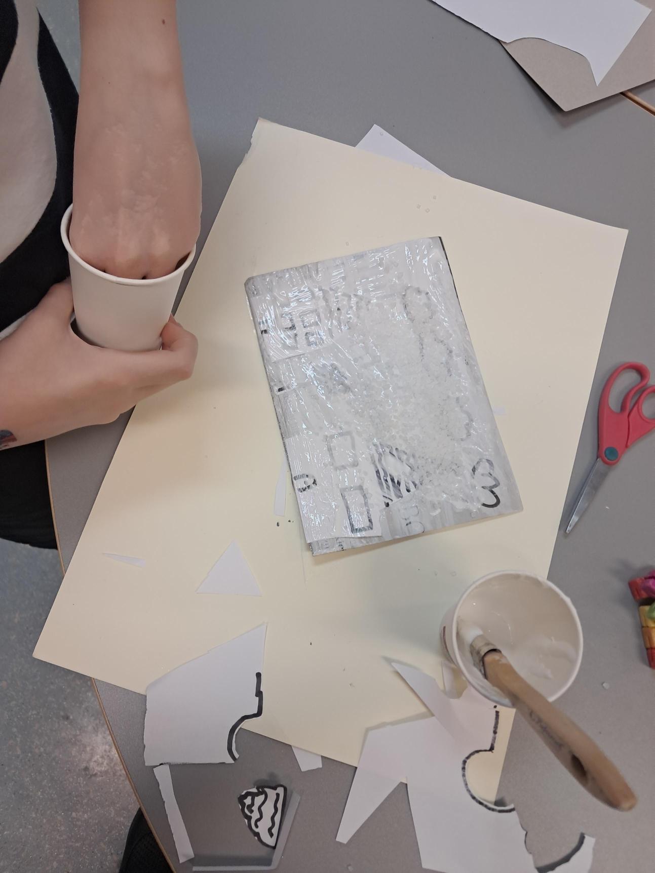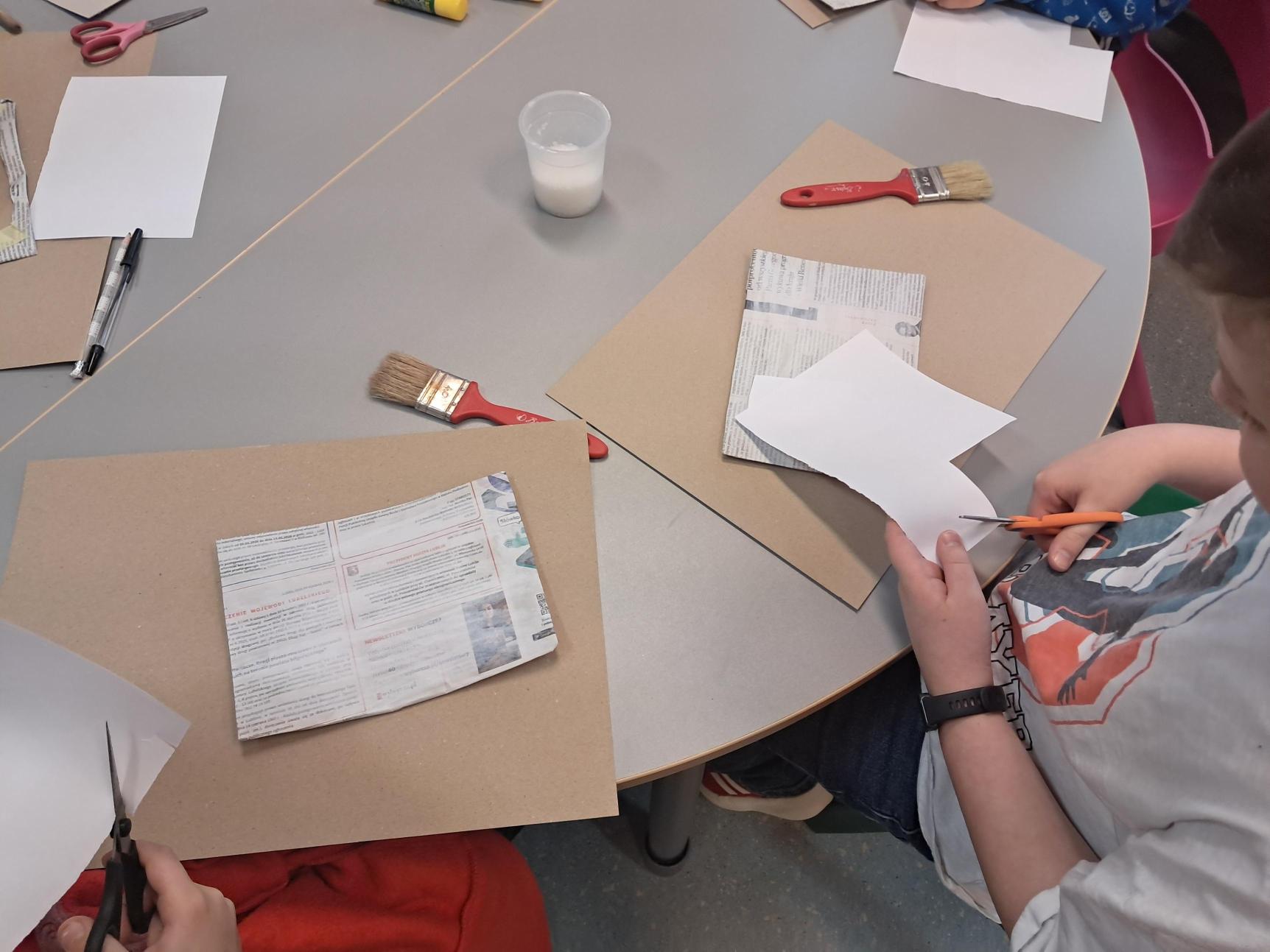 Podczas zajęć dzieci tworzyły zimowe pejzaże, eksperymentując z fakturą i kolorem. Gazety posłużyły do budowania tła i form, cukier imitował śnieg, a brokat dodał pracom blasku i efektu mroźnej aury. Zajęcia rozwijały kreatywność, sprawność manualną oraz wyobraźnię, a jednocześnie sprawiły uczniom wiele radości.